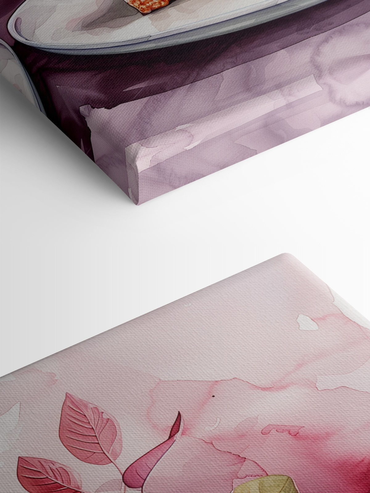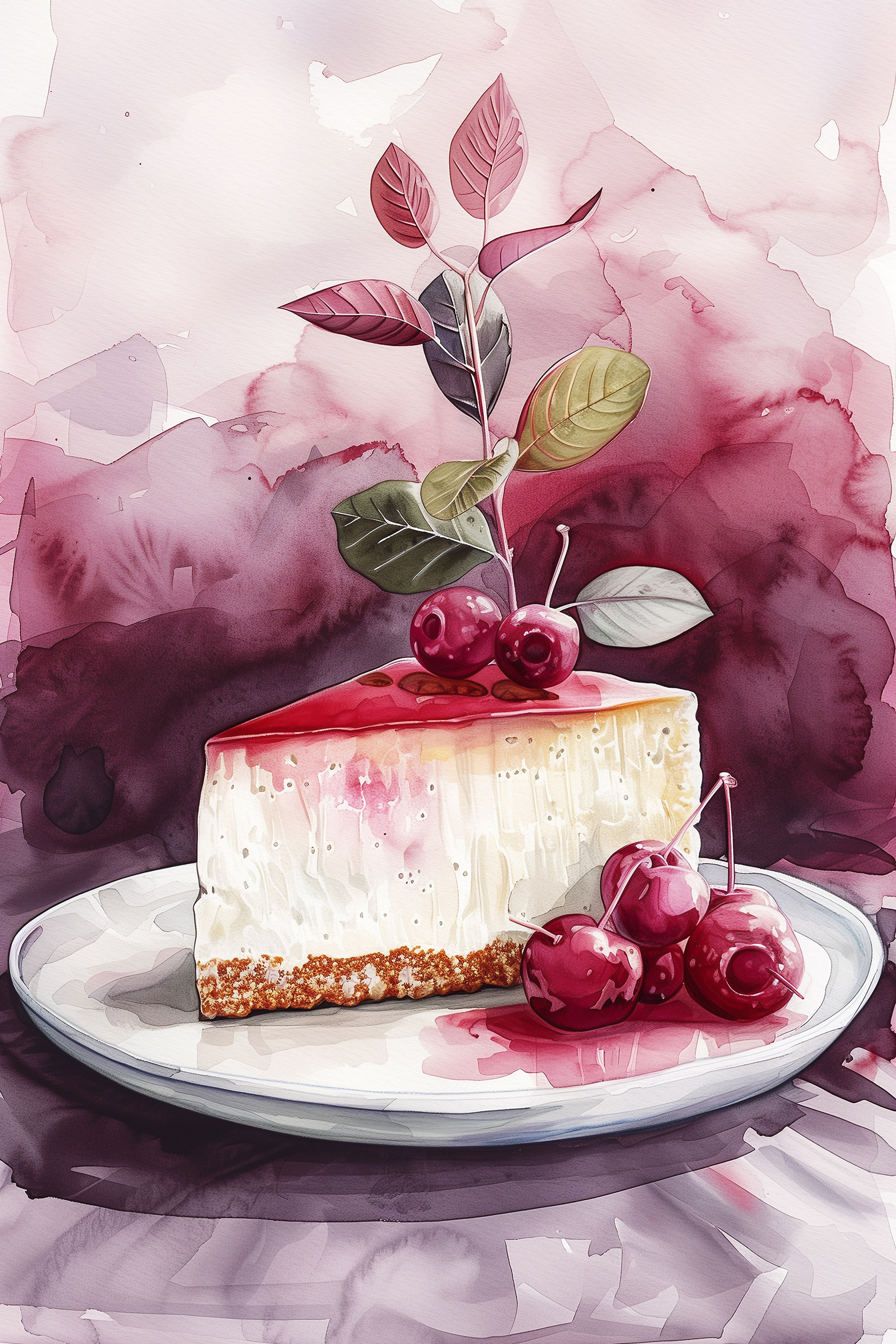 Le fond aquarelle tourbillonne dans de douces nuances de rose et de violet, créant une atmosphère douillette et chaleureuse. Imaginez que vous l’accrochiez dans votre cuisine ou votre salle à manger : il ne manquera pas de susciter de délicieuses conversations. Imaginez des amis réunis autour d’une table, se remémorant peut-être leurs desserts préférés ou les recettes qu’ils ont créées. Cette impression ne se contente pas d’être accrochée au mur ; elle apporte un élément de chaleur et de convivialité.