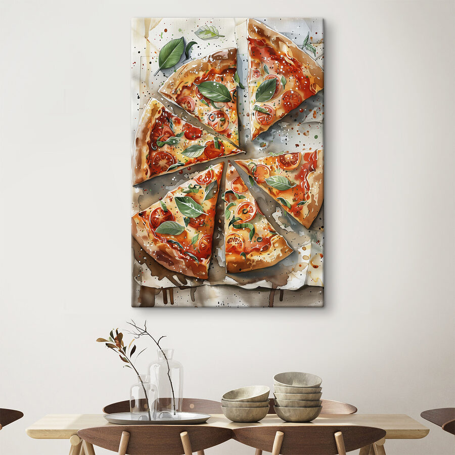 Découvrez les impressions sur toile s39703, un vrai régal pour les yeux ! Imaginez votre cuisine – ou une salle à manger confortable – constamment embellie par cet art culinaire vibrant. C’est comme si vous entriez dans une pizzeria italienne à chaque fois que vous pénétrez dans la pièce. Les couleurs riches vous donnent presque faim – ces tomates juteuses, ces feuilles de basilic fraîches et ce fromage gluant… miam ! L’aspect artisanal et les éclaboussures ludiques lui confèrent une ambiance vivante, parfaite pour susciter la joie et la conversation. Cette pièce n’est pas seulement un décor, c’est une tranche de bonheur. Parfait pour tous ceux qui prennent leur pizza au sérieux, sans pour autant prendre la vie trop au sérieux !