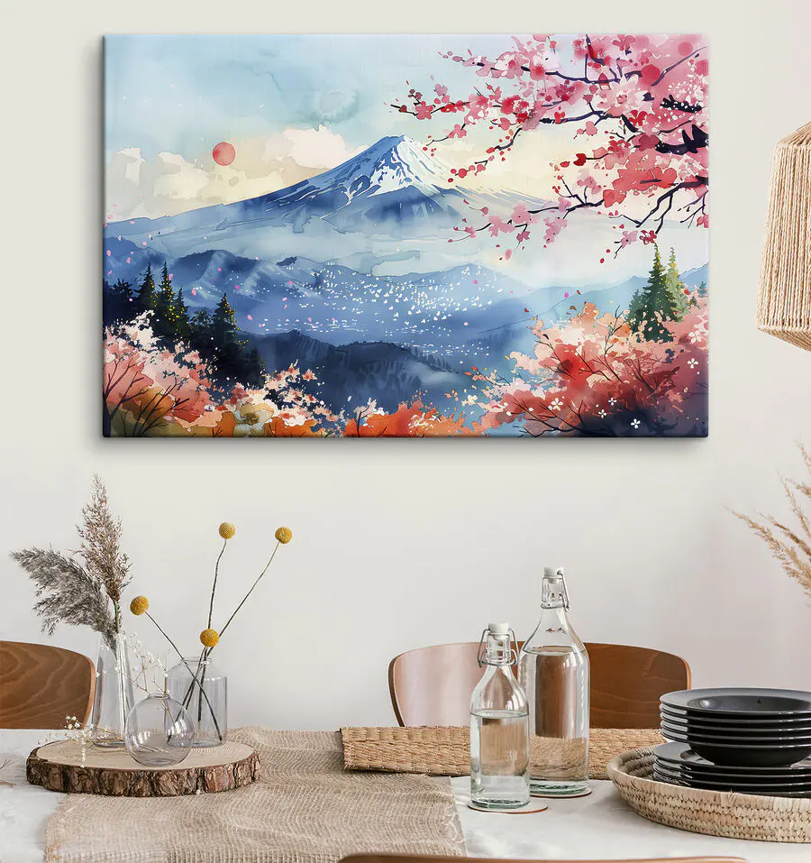 Imaginez que vous vous réveillez tous les jours avec une telle vue ! “Les impressions sur toile s39775” apportent une tranche de nature sereine dans votre espace de vie. C’est comme des mini-vacances – mais sans les bagages et le décalage horaire. L’air vivifiant de la montagne, le lever de soleil éblouissant et ces délicates fleurs roses… Vous pouvez presque sentir les doux pétales frôler votre peau et entendre le murmure du vent dans les arbres. C’est l’endroit idéal pour tous ceux qui ont besoin de s’évader rapidement de l’agitation.