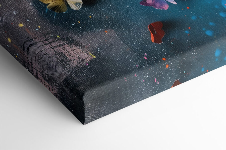 Cette toile ne se contente pas de rester sur votre mur, elle danse ! Les papillons semblent presque prêts à s’envoler dans votre chambre. Vous pourriez vous surprendre à rêvasser, complètement immergé dans le mélange de couleurs riches et de motifs abstraits. Parfait pour tous ceux qui aiment ajouter une touche d’extraordinaire à leur espace quotidien.