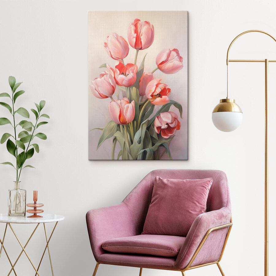Cette impression sur toile de tulipes ne fait-elle pas rêver ? Imaginez-la suspendue dans votre espace – lumineuse, joyeuse et tellement invitante ! Ces tulipes rose tendre et corail débordent de vie et se balancent paresseusement sous l’effet d’une brise légère. C’est comme si vous aviez votre propre coin de jardin printanier sur votre mur tout au long de l’année.
