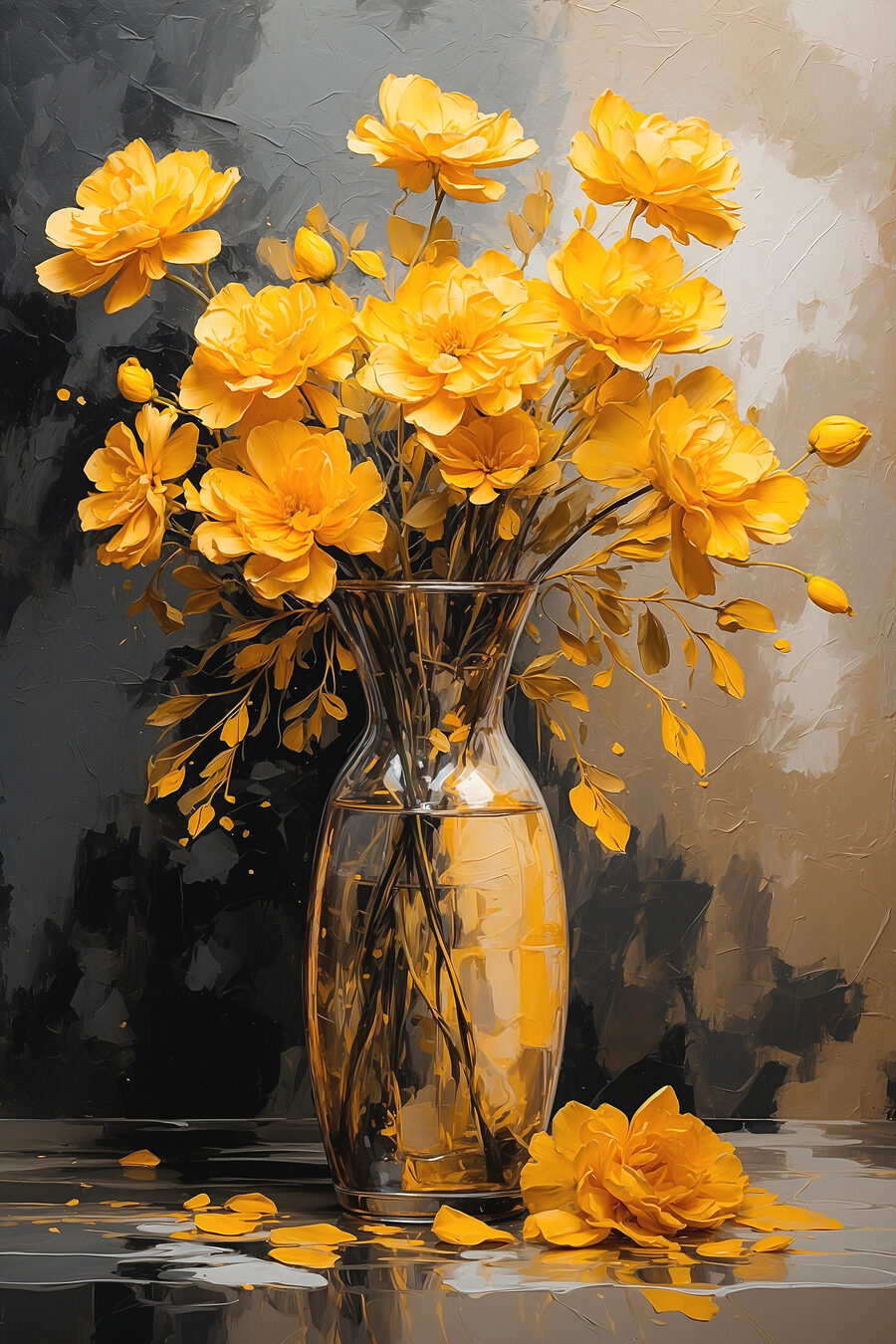 Illuminez n’importe quelle pièce avec cette superbe impression sur toile représentant un vase de fleurs jaunes joyeuses. C’est comme si vous apportiez un peu de soleil à l’intérieur – parfait pour les jours gris où un peu de couleur peut remonter le moral. Imaginez un coin confortable avec cette œuvre d’art suspendue au-dessus d’une chaise de lecture, vous rendant instantanément un peu plus joyeux. Les fleurs vibrantes ajoutent une touche de chaleur et de nature, créant une atmosphère accueillante. De plus, c’est un sujet de conversation ! Imaginez vos invités en train de l’admirer et de partager leurs propres histoires de fleurs préférées. C’est un véritable bijou pour n’importe quel mur !