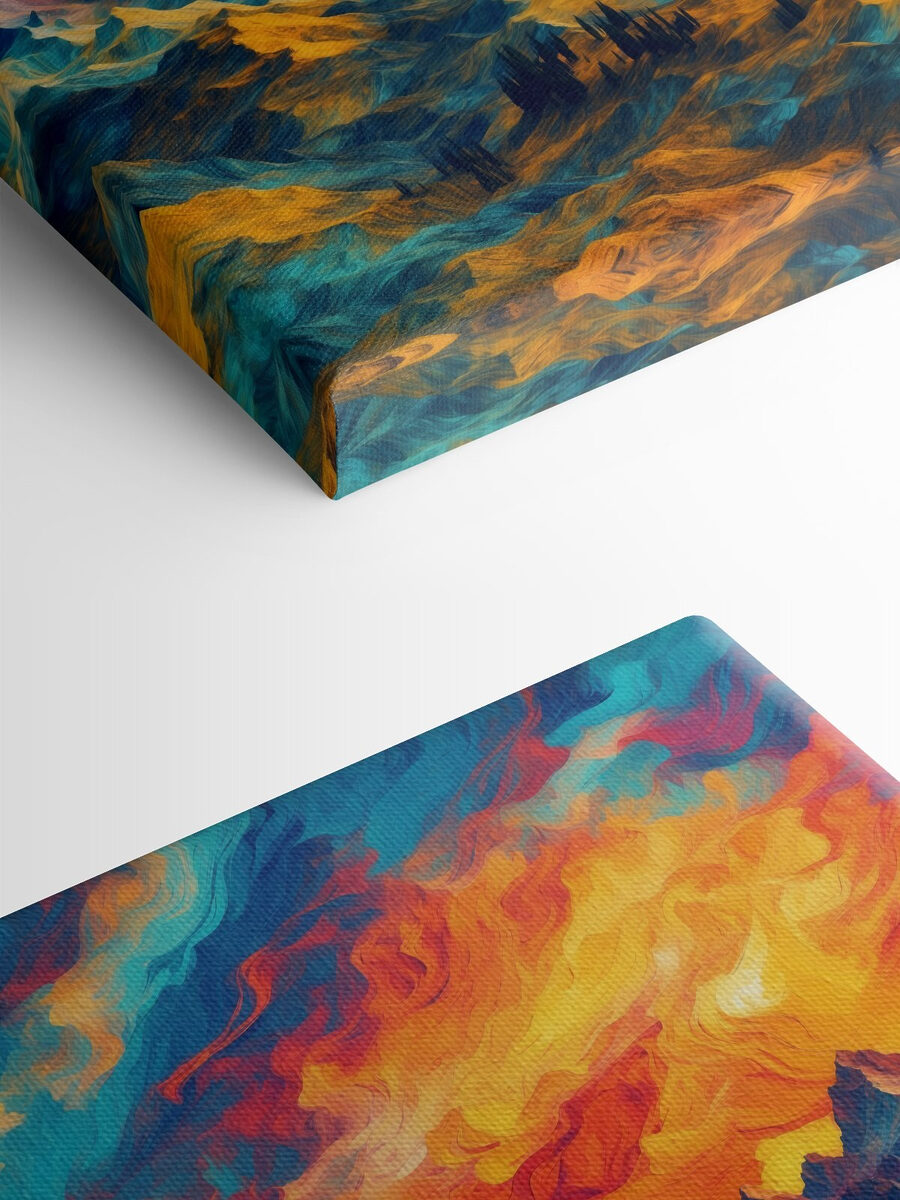 Cette toile ne déborde-t-elle pas de couleurs et de vie ? C’est comme un rêve éveillé capturé en peinture – imaginez ces riches oranges et bleus qui vous accueillent dès le matin. C’est le genre d’œuvre qui vous donne l’impression d’être au sommet d’une montagne, avec le coucher de soleil qui s’étale sur les sommets. Elle est parfaite pour ajouter une touche de dynamisme à une pièce terne ou pour pimenter votre décoration existante. Honnêtement, ce tableau pourrait vous inciter à vous arrêter et à le regarder pendant un certain temps… vous vous y perdrez. Idéal pour les amoureux de la nature ou pour tous ceux qui ont besoin d’un peu plus d’éclat à la maison !