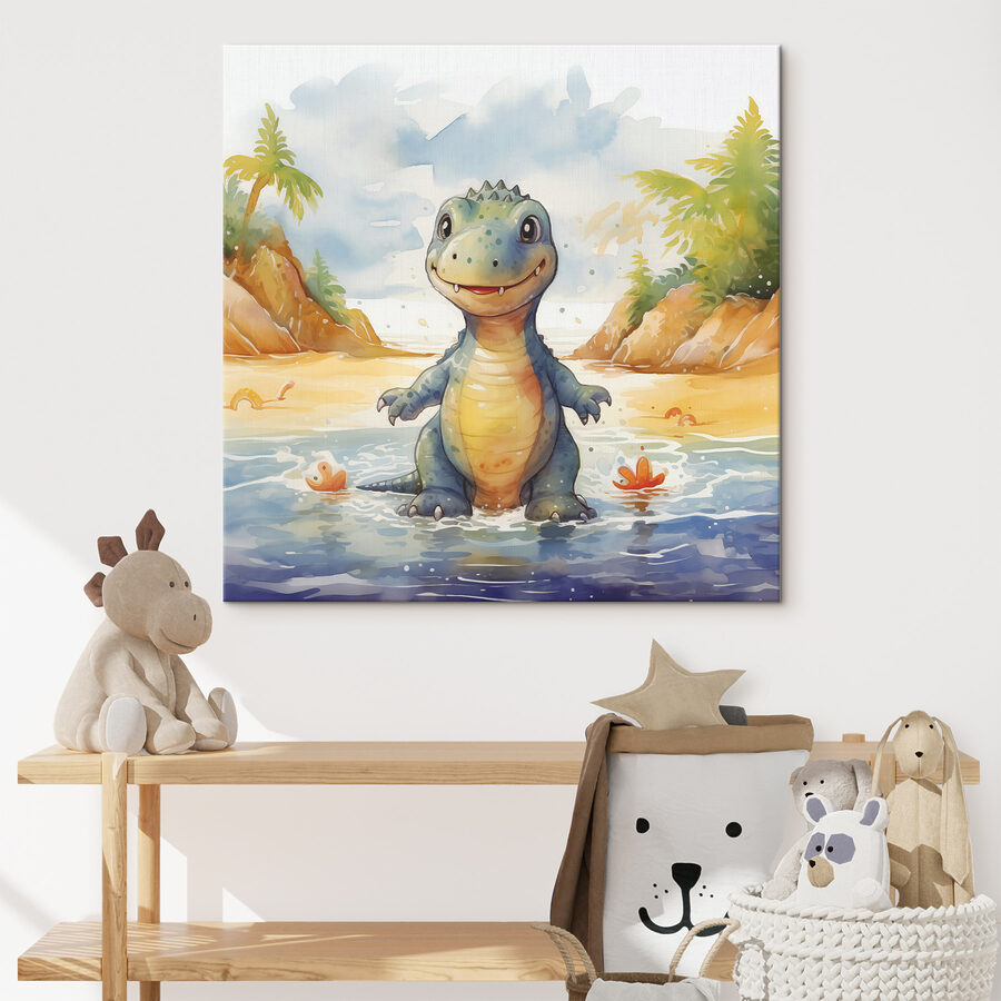 Apportez une touche de fantaisie à n’importe quel espace avec cette adorable impression sur toile représentant un dinosaure s’amusant à barboter dans l’eau. Son côté ludique la rend parfaite pour une chambre d’enfant, une aire de jeu ou même un coin de salon excentrique qui a besoin d’une pincée d’amusement. Imaginez un dinosaure sympathique profitant d’une journée ensoleillée à la plage – qui ne sourirait pas à cela ? Les couleurs vives et la scène joyeuse peuvent susciter la joie et inspirer d’innombrables histoires amusantes. Qu’il s’agisse d’entamer une conversation ou simplement de créer une charmante toile de fond, cette pièce ajoute un élément de joie qui ressemble à une étreinte chaleureuse. Parfaite pour tous les âges, elle ne manquera pas de créer un petit coin de bonheur dans la maison.