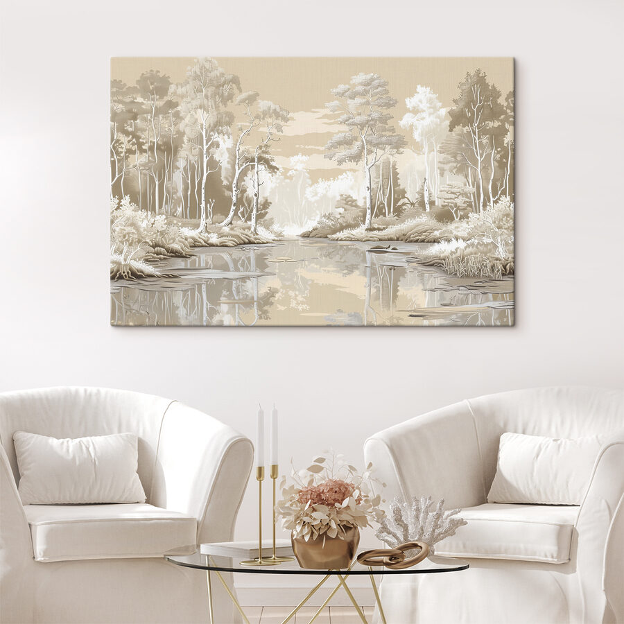 Imaginez que vous pénétrez dans une oasis de tranquillité chaque fois que vous entrez dans votre chambre. Cette impression sur toile d’une rivière sereine encadrée d’arbres luxuriants et de plantes délicates apporte la tranquillité de la nature à l’intérieur. Le doux reflet de l’eau donne l’impression d’un coin de paradis sur votre mur. Parfait pour un coin lecture confortable ou une chambre à coucher apaisante, ce tableau nous rappelle de ralentir et de respirer. Qui ne voudrait pas rêvasser au bord d’une rivière ? Il suffit de l’accrocher, d’allumer une bougie et de laisser la détente commencer. Entourez-vous du charme de la nature et laissez vos soucis s’envoler.