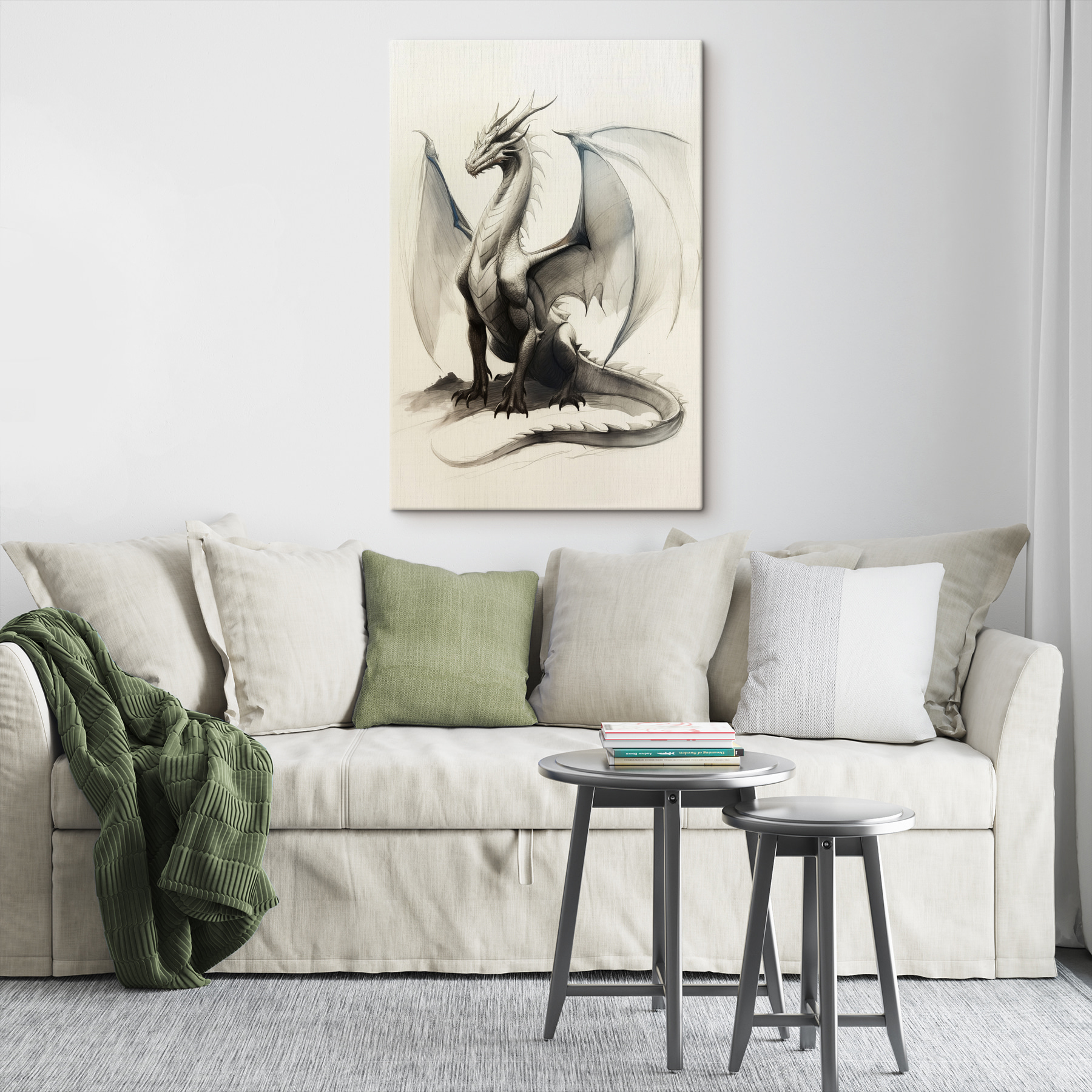 Vous souhaitez ajouter une touche de mythe et d’élégance à votre espace ? Cette impression sur toile, s40004, transformera n’importe quelle pièce avec un superbe croquis de dragon en noir et blanc. Elle est parfaitement intégrée à vos catégories de décoration préférées : Art sur toile noir et blanc et Art sur toile avec animaux.