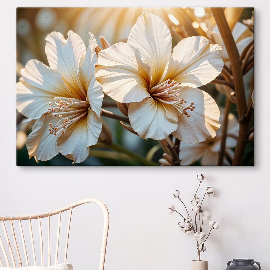 Illuminez n’importe quelle pièce avec les “Impressions sur toile Les fleurs au soleil dansent dans la lumière”. Cette œuvre capture la douce étreinte de la lumière du soleil qui filtre à travers de délicates fleurs. Imaginez que vous entrez dans votre espace et que vous avez l’impression d’avoir pénétré dans un jardin baigné de soleil. Les teintes chaudes et les pétales doux invitent à la tranquillité pure, ce qui en fait un objet parfait pour les espaces qui appellent à un peu de sérénité. Suspendez-le au-dessus d’un coin lecture confortable ou laissez-le être le point central d’un salon animé. Dans tous les cas, il pourrait bien inspirer un ou deux sourires, sans parler des rêveries sur les promenades printanières. Véritable sujet de conversation, cette toile d’art ajoute une touche de charme naturel à l’intérieur. Qui ne voudrait pas partager une pièce avec une telle beauté ?
