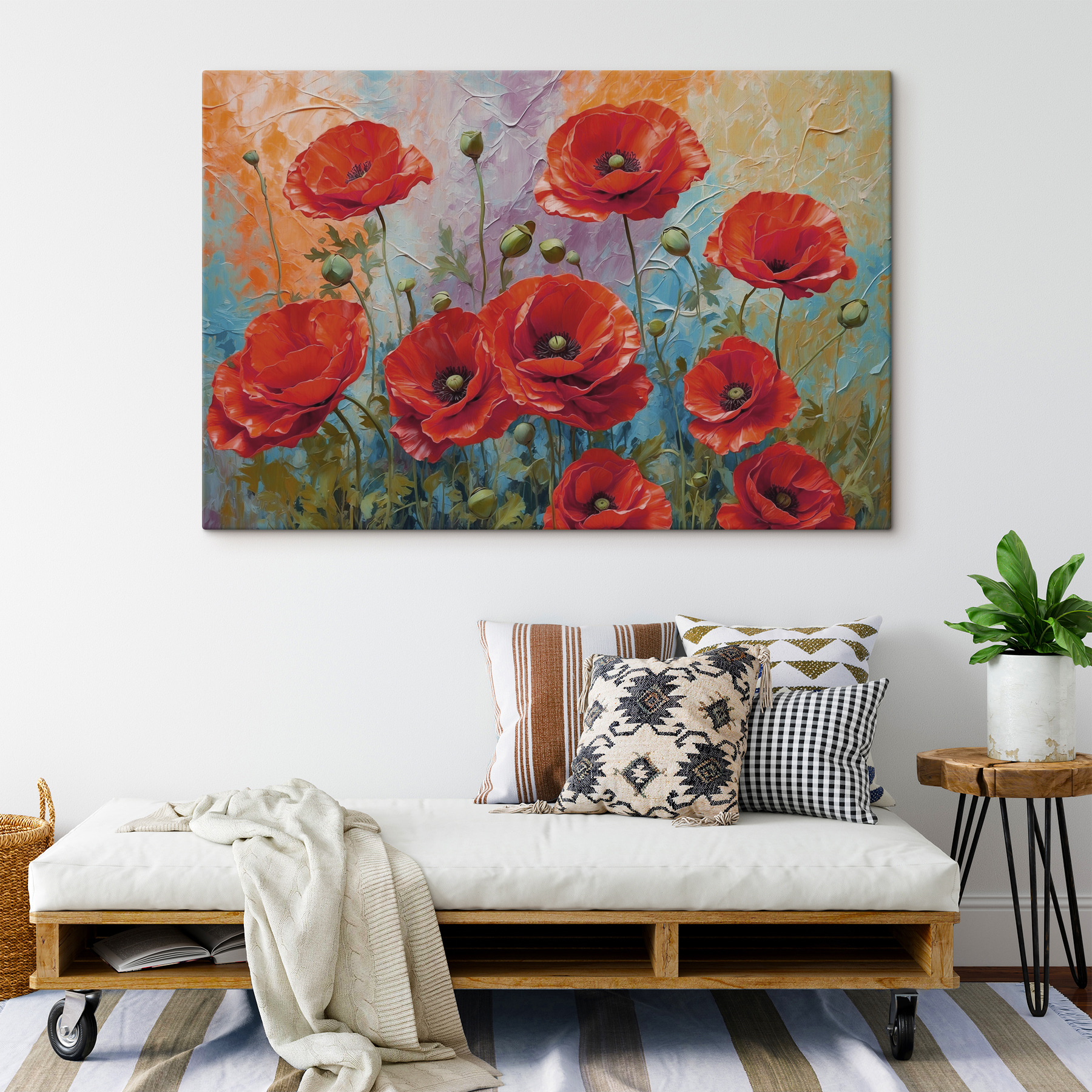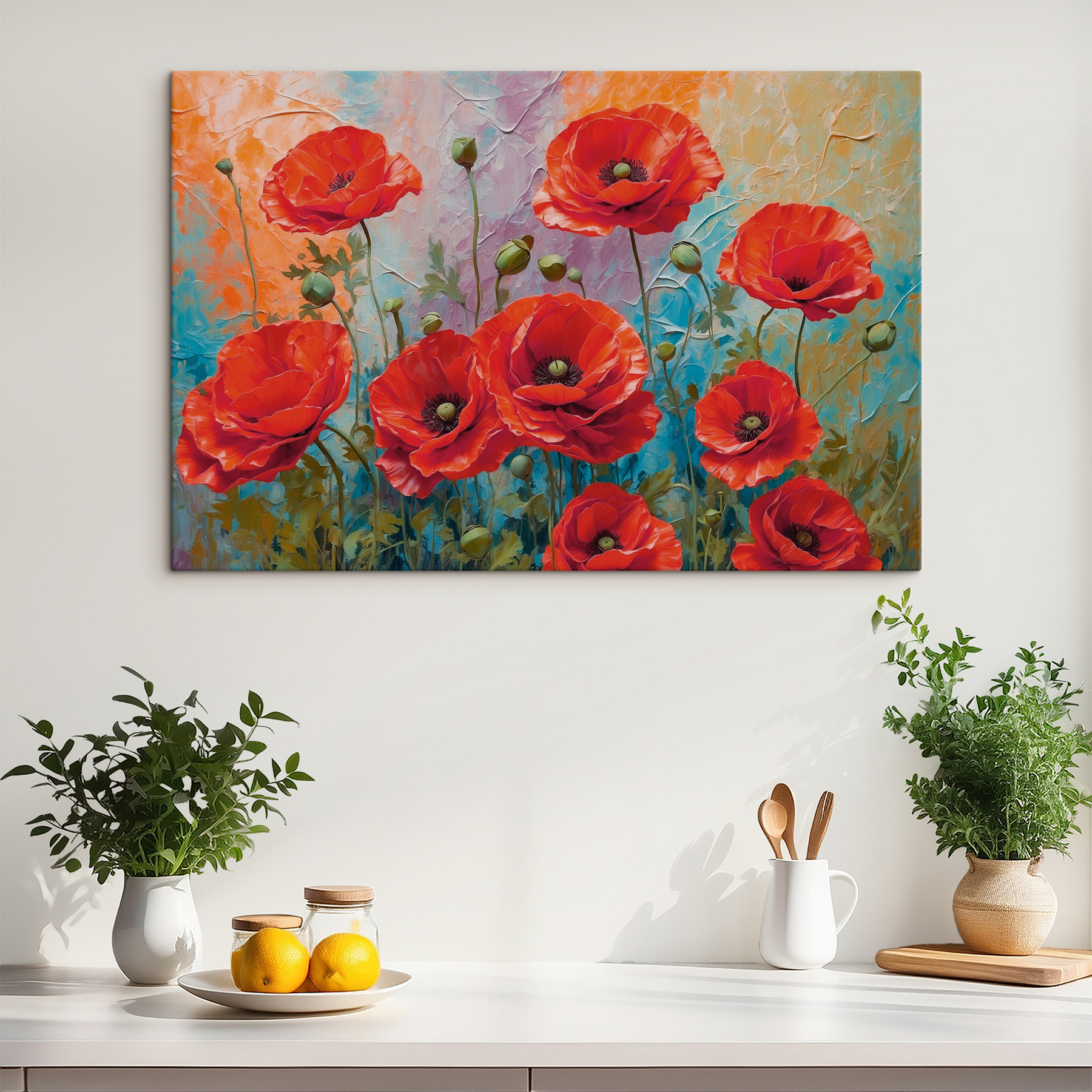 Envie d’égayer votre espace avec une touche de couleur ? Jetez un coup d’œil à cette superbe impression sur toile, “Tableaux s40063”. C’est comme si vous pénétriez dans un jardin de rêve – des coquelicots rouges éclatent sur un doux mélange de teintes orange, bleues et lavande. Parfait pour toute pièce ayant besoin d’une touche de fraîcheur et de dynamisme, c’est presque comme une bouffée d’air frais à l’intérieur. Imaginez que vous rentriez chez vous après une longue journée, cette beauté vous apportera instantanément gaieté et calme. Que vous soyez amateur d’art ou que vous aimiez simplement les fleurs et la nature, cette pièce ajoute une touche vivante et fantaisiste qui vous fera sourire à chaque fois !