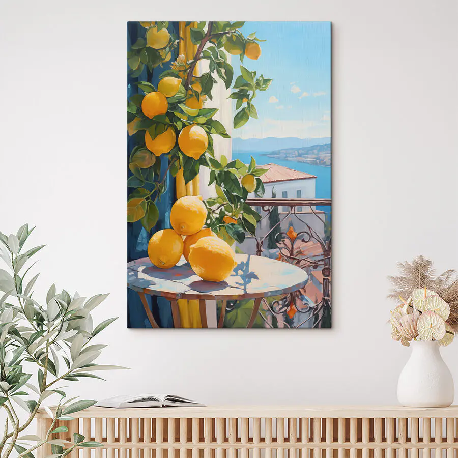 Jetez un coup d’œil à cette impression sur toile vibrante, “Impressions sur toile s40091” – un ajout étonnant à n’importe quel mur qui ressemble à une bouffée d’air frais ! Imaginez ceci : des citrons si brillants que vous pouvez presque goûter leur saveur piquante, en équilibre avec la toile de fond bleue tranquille d’une retraite au bord de la mer. C’est comme si vous aviez une part de la Méditerranée chez vous.