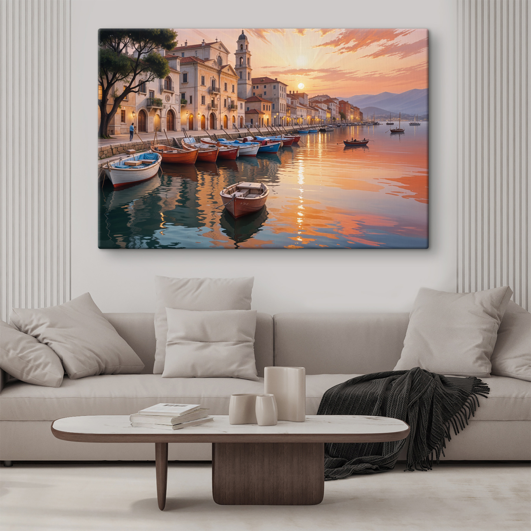 Imaginez ceci : vous rentrez chez vous après une longue journée, vous enlevez vos chaussures et vous êtes instantanément transporté au bord d’un canal serein au coucher du soleil – rien qu’en regardant votre mur ! Cette impression sur toile, “Impressions sur toile s40150”, pourrait faire exactement cela. C’est comme une fenêtre sur une ville paisible du vieux monde où les bateaux colorés flottent doucement sur les eaux calmes et où les bâtiments brillent chaleureusement dans la lumière du soir. Vous pouvez presque sentir la brise fraîche et l’odeur de l’eau douce. Parfait pour ajouter une touche de tranquillité à votre espace. Qu’il s’agisse de votre salon, de votre chambre ou de votre bureau, cette pièce s’intègre parfaitement, faisant de chaque coup d’œil une mini-vacance. Accrochez-le et laissez votre imagination vagabonder – qui n’en voudrait pas ?