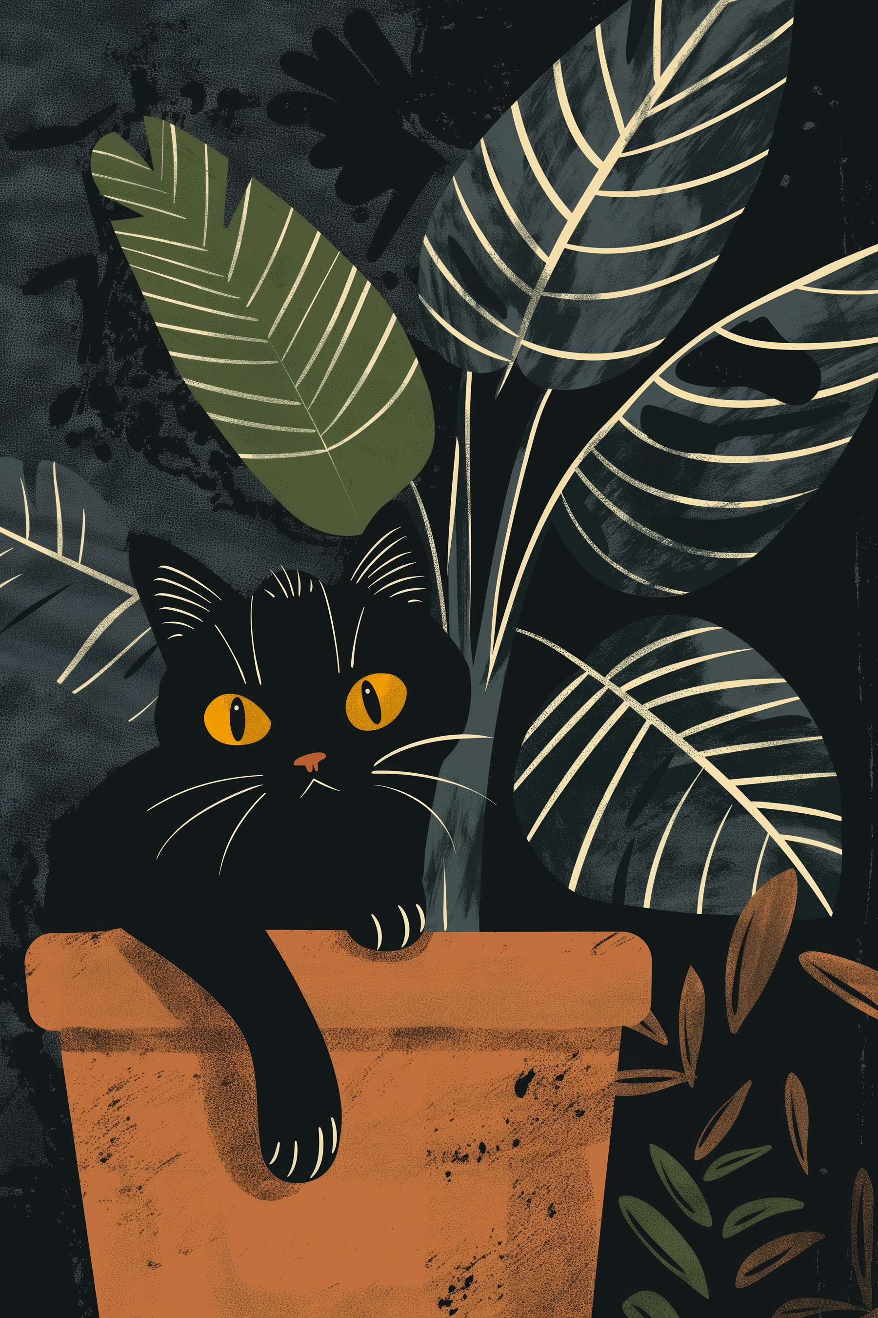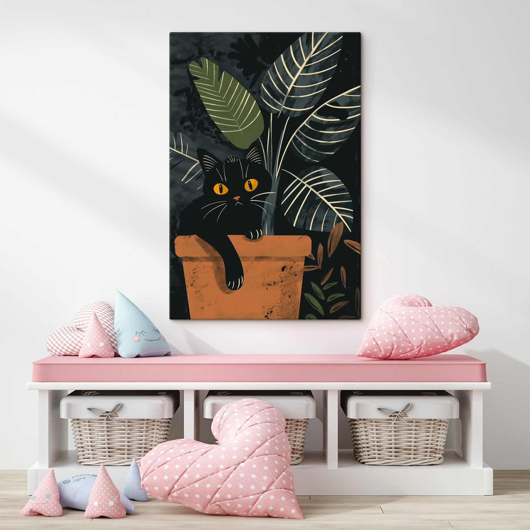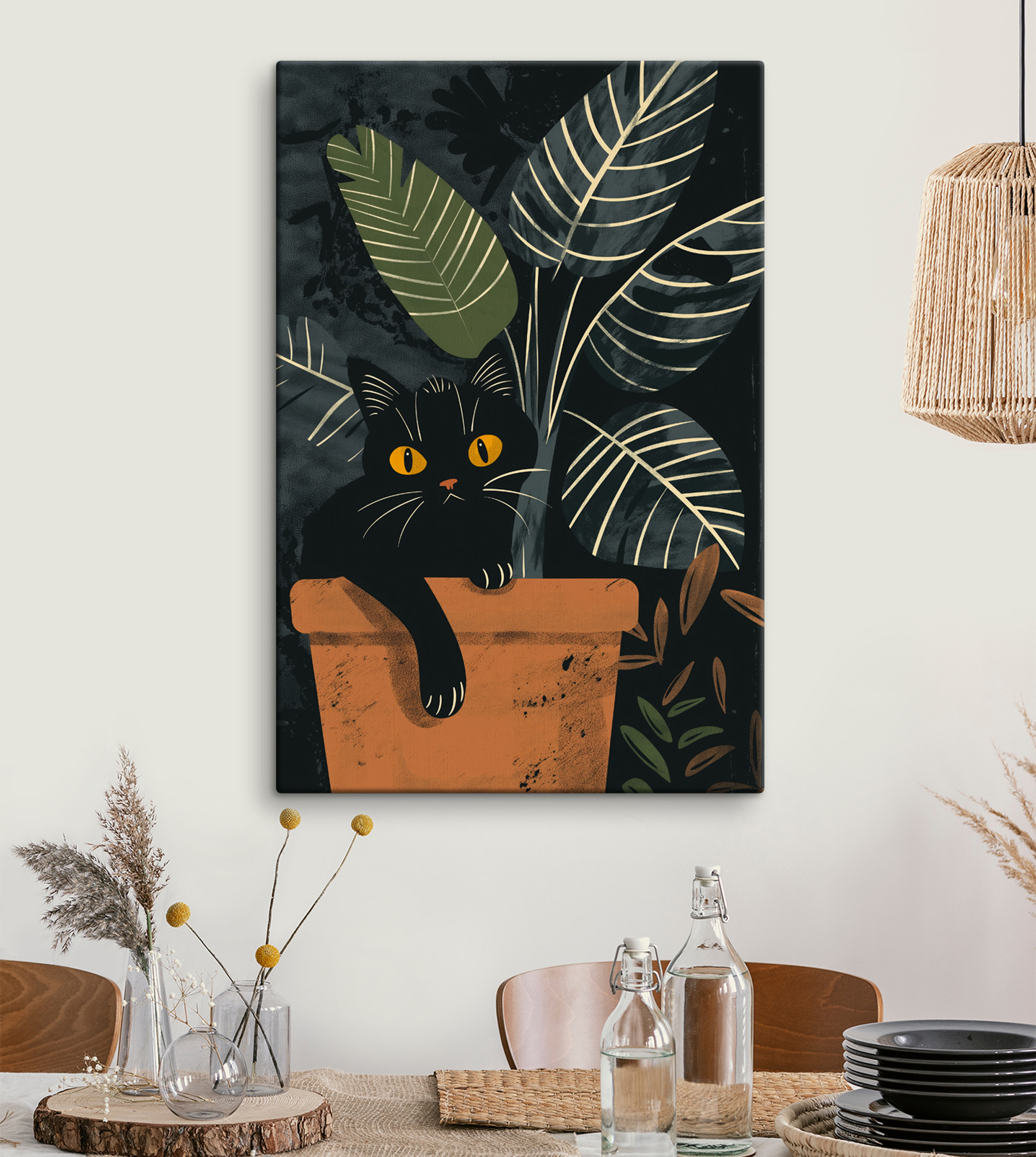 Parfaite pour les amoureux des animaux et des plantes, cette toile d’art apporte de la chaleur et une touche d’humour à n’importe quelle pièce. C’est le genre d’œuvre qui suscite la conversation – “Avez-vous vu ce chat dans le pot de fleurs ? On dirait qu’il complote quelque chose !” – et ajoute la bonne dose de confort et de convivialité.