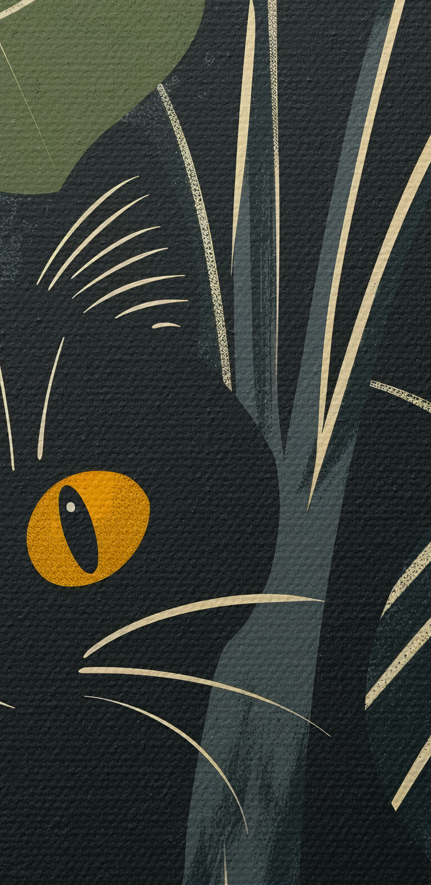Imaginez cette impression sur votre mur – elle ne manquera pas de vous faire sourire à chaque fois que vous passerez devant. Que ce soit dans la cuisine, le couloir ou le salon, le regard curieux de ce chat et ces motifs de feuilles audacieux ne manqueront pas d’attirer l’attention. Et n’est-ce pas ce dont nous avons tous besoin ? Un peu de charme inattendu dans nos espaces quotidiens.