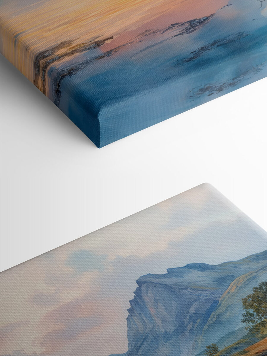 Il y a quelque chose de magique dans cette impression “Eau avec montagnes en arrière-plan”. C’est comme si vous pénétriez dans une brume matinale calme – la nature enveloppée dans une étreinte de rêves aquarellés. Parfait pour les coins tranquilles où vous sirotez votre café et planifiez de grandes aventures ou, soyons honnêtes, essayez simplement de vous réveiller. Chaque coup d’œil est comme une petite évasion, un doux rappel à respirer au milieu de la vie trépidante. Imaginez ce chef-d’œuvre en train de partager des histoires tout en étant accroché à votre mur, comme un vieil ami.