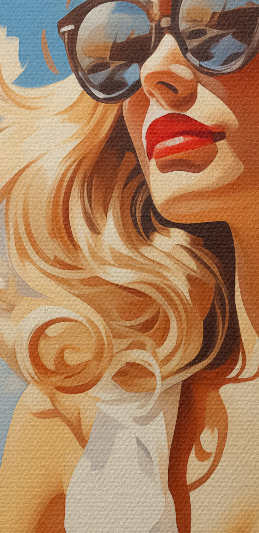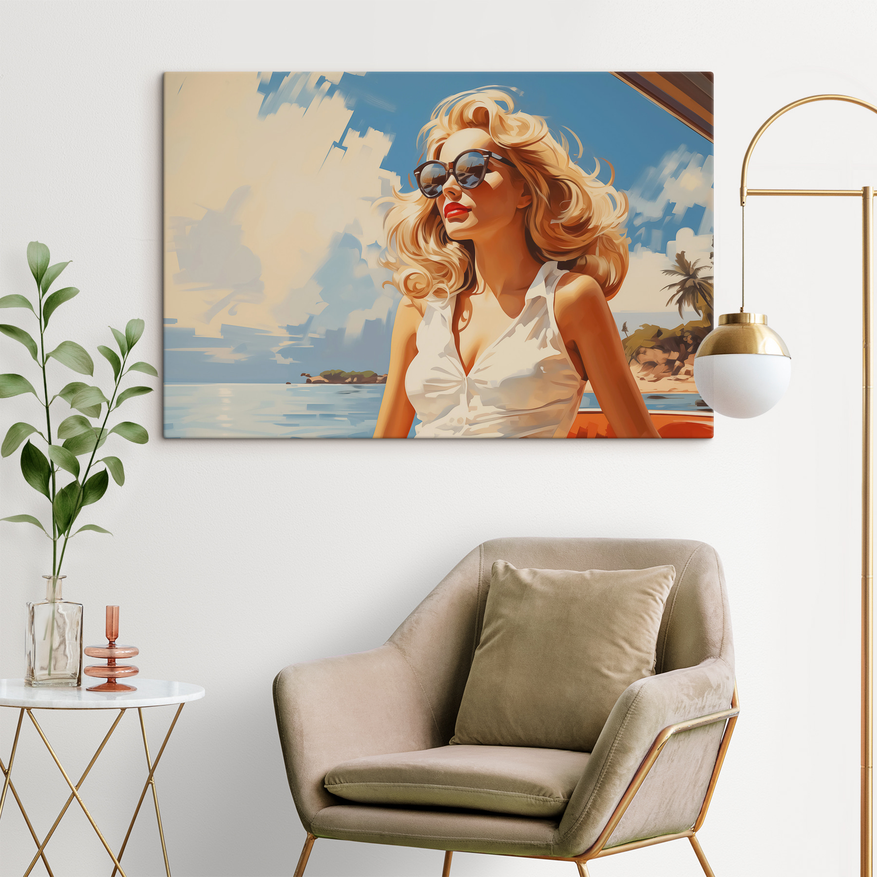 Vous avez toujours rêvé d’avoir une tranche d’été tout au long de l’année ? Cette superbe impression sur toile, “Tableaux s40321”, est comme la capture d’un moment de brise et de soleil et sa préservation à jamais. Imaginez : chaque coup d’œil à votre mur vous renvoie à une journée de plage, cheveux blonds ébouriffés par le vent, lunettes de soleil reflétant le ciel – le bonheur à l’état pur, n’est-ce pas ? Les teintes vibrantes et l’ambiance décontractée font de ce mur un fabuleux point de mire pour votre salon ou votre bureau – un stimulant garanti pour l’humeur ! De plus, il est tout à fait à sa place dans la rubrique “Art sur toile avec des personnes”, mais il s’intégrera tout aussi bien dans les rubriques “Beaux-arts”, “Nature” ou même “Art sur toile populaire”. Et le plus beau, c’est qu’il s’agit de vacances instantanées. C’est comme des vacances instantanées – pas besoin de faire ses valises.
