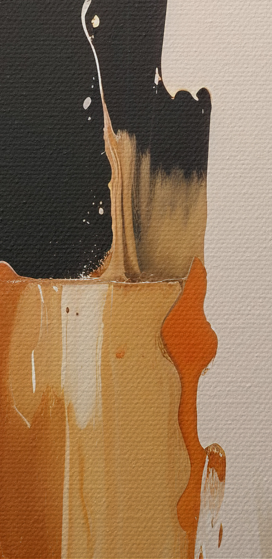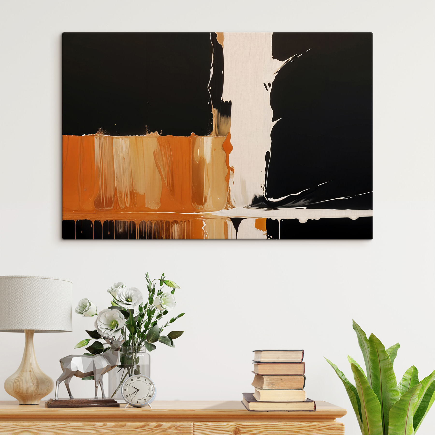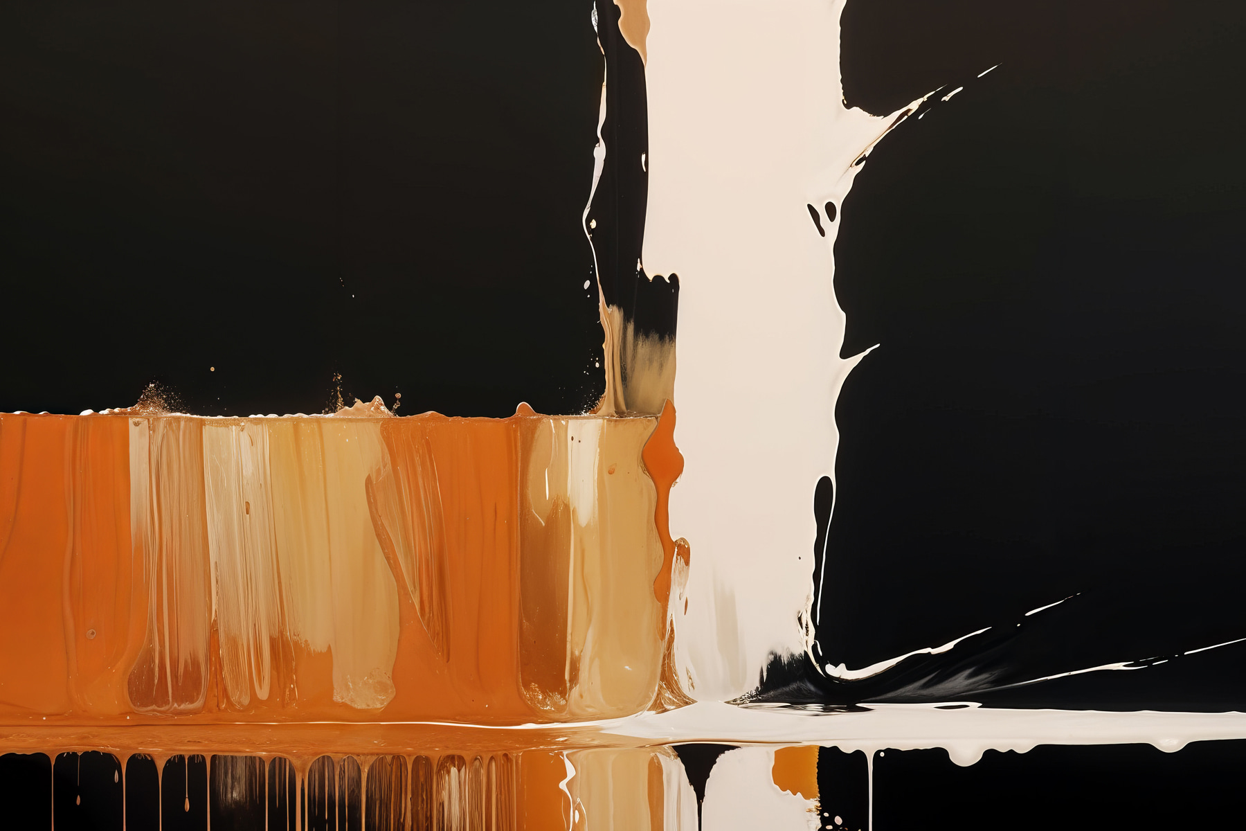 Tableaux Peinture blanche et orange dégoulinant sur une surface noire (UGS: s40402)
