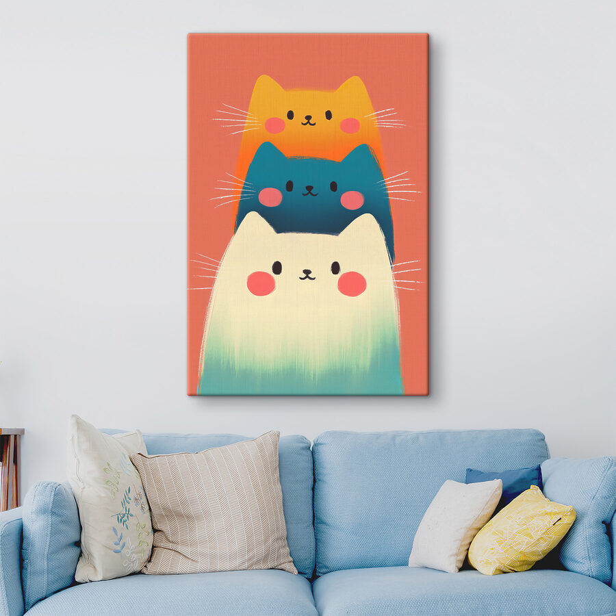 Vous aimez les décors excentriques et adorables ? Voici “Impressions sur toile s40431” ! Cette pièce vibrante est parfaite pour tous ceux qui ne peuvent pas résister à une touche de fantaisie – regardez ces chats colorés empilés comme une tour féline confortable ! Elle ne manquera pas de vous faire sourire et d’apporter une touche de gaieté à vos murs. Il convient à tous les coins de la maison qui ont besoin d’une petite touche de légèreté, que ce soit la cuisine, la chambre d’un enfant ou le couloir.