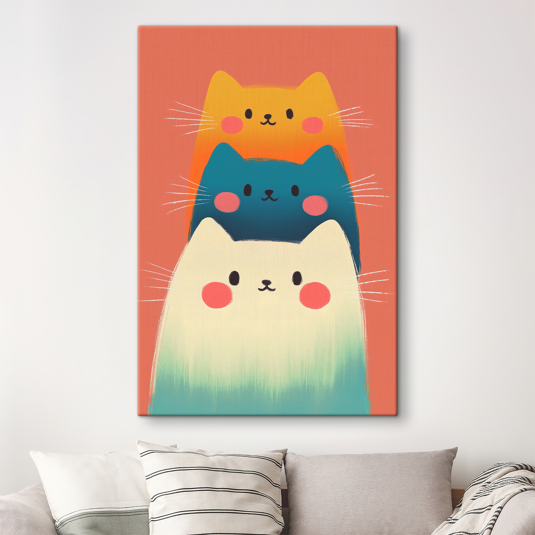 Vous aimez les décors excentriques et adorables ? Voici “Impressions sur toile s40431” ! Cette pièce vibrante est parfaite pour tous ceux qui ne peuvent pas résister à une touche de fantaisie – regardez ces chats colorés empilés comme une tour féline confortable ! Elle ne manquera pas de vous faire sourire et d’apporter une touche de gaieté à vos murs. Il convient à tous les coins de la maison qui ont besoin d’une petite touche de légèreté, que ce soit la cuisine, la chambre d’un enfant ou le couloir.