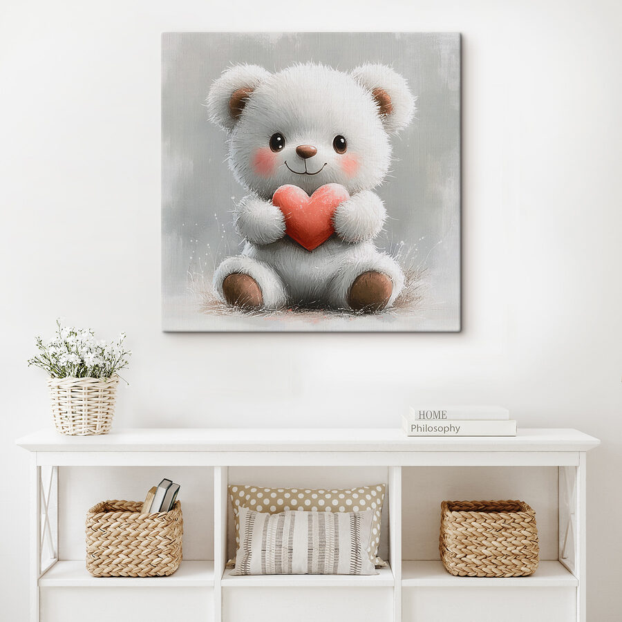 Illuminez n’importe quel espace avec cette délicieuse impression sur toile représentant un ourson blanc duveteux serrant un cœur. C’est comme si vous aviez un petit paquet de joie accroché au mur ! Imaginez que vous passiez devant et que vous aperceviez cette douce frimousse : vous serez immédiatement de bonne humeur. Qu’il s’agisse d’une chambre d’enfant, d’un salon confortable ou même de votre bureau (car qui n’a pas besoin d’un peu d’amour au travail ?), cette œuvre d’art ajoute de la chaleur et une touche de charme. De plus, il évoque les récits d’enfance et les joies simples. Alors, pourquoi ne pas inviter cette créature câline dans votre maison ? Elle ne manquera pas de faire naître des sourires et peut-être même d’inspirer des moments chaleureux !