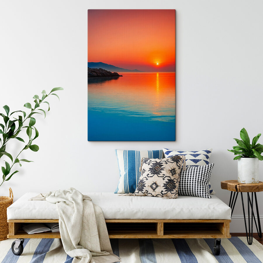 Plongez dans une tranche de sérénité avec cette superbe impression sur toile. Imaginez que vous vous installez dans votre salon et que vous êtes accueilli par la lueur chaleureuse d’un coucher de soleil se reflétant sur des eaux calmes. C’est comme si vous apportiez une partie de vos vacances à la plage sur vos murs. Les teintes orange et rose vibrantes dansent sur la toile, invitant à des rêveries de rivages sablonneux et de douces vagues. Parfait pour égayer n’importe quel espace, ce tableau ajoute une touche de tranquillité qui rend les journées les plus chargées un peu plus paisibles. Un rappel quotidien pour faire une pause et s’imprégner de la beauté environnante.