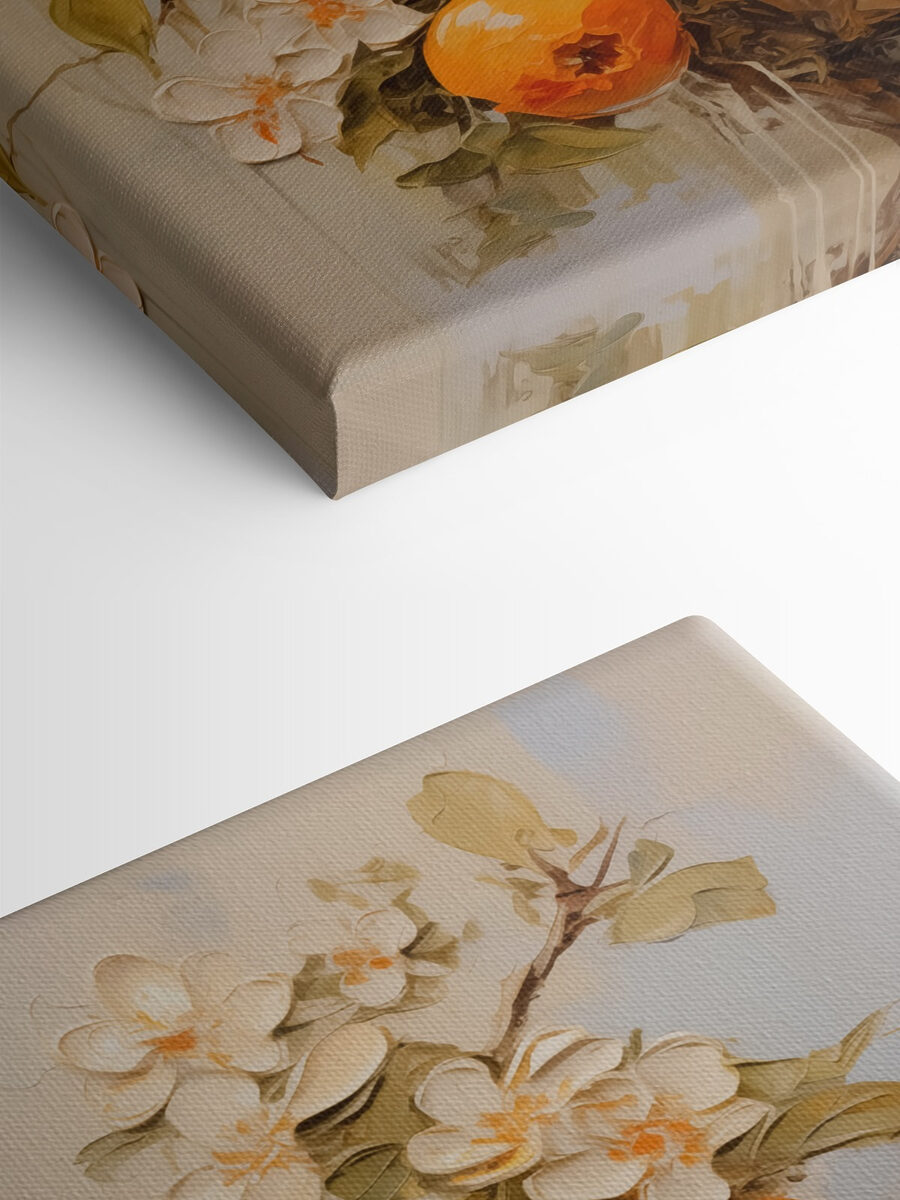 Illuminez n’importe quel espace avec cette ravissante impression sur toile représentant de charmantes oranges nichées parmi des fleurs délicates. C’est comme si vous rameniez à l’intérieur une tranche de vie ensoleillée dans un verger. Imaginez-la suspendue dans une cuisine chaleureuse ou une salle à manger joyeuse – elle ne manquera pas de susciter des conversations. Les oranges éclatants se détachent sur les teintes douces, créant un point focal rafraîchissant. Imaginez que vous sirotiez votre café le matin en profitant de son éclat chaleureux. Ce n’est pas seulement de l’art, c’est aussi l’élément déclencheur de l’humeur dont tout le monde a besoin. Il ne manque plus qu’un doux parfum d’agrumes ! Cette pièce est parfaite pour tous ceux qui apprécient la beauté de la nature d’une manière unique.