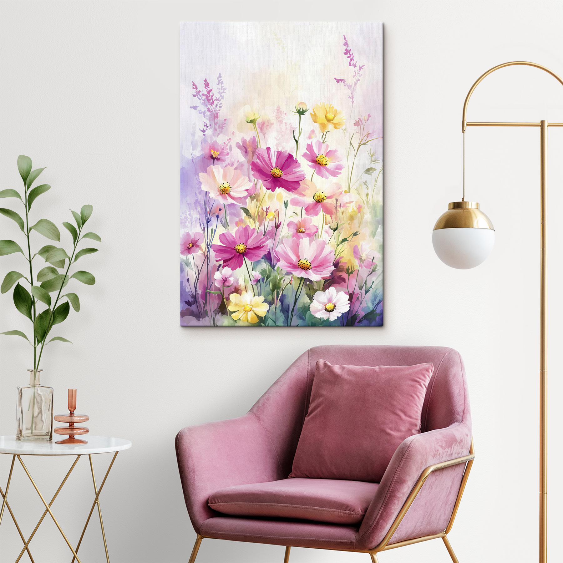 Cet imprimé appartient à plusieurs catégories : Beaux-Arts, Fleurs, Nature, Populaire, et Aquarelle sur toile. Honnêtement, elle s’intègre parfaitement dans chacune d’entre elles. Le délicat mélange de couleurs est presque magique, comme si vous vous attendiez à ce qu’une douce brise fasse bruisser ces pétales d’un instant à l’autre.