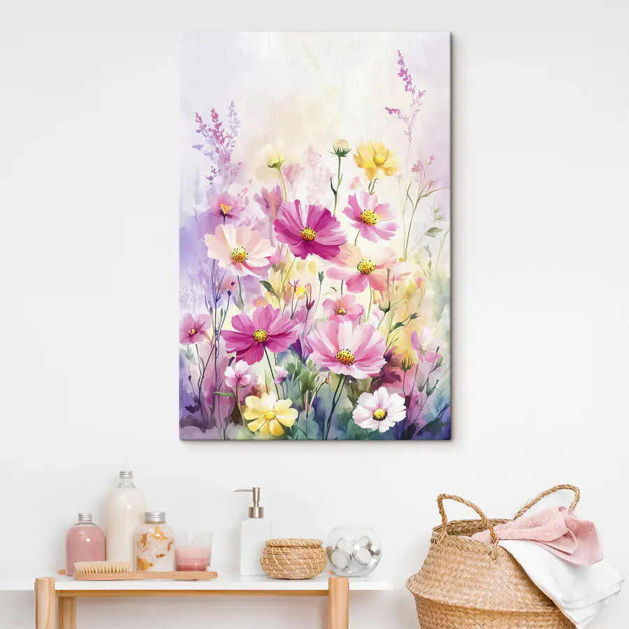 Cet imprimé appartient à plusieurs catégories : Beaux-Arts, Fleurs, Nature, Populaire, et Aquarelle sur toile. Honnêtement, elle s’intègre parfaitement dans chacune d’entre elles. Le délicat mélange de couleurs est presque magique, comme si vous vous attendiez à ce qu’une douce brise fasse bruisser ces pétales d’un instant à l’autre.
