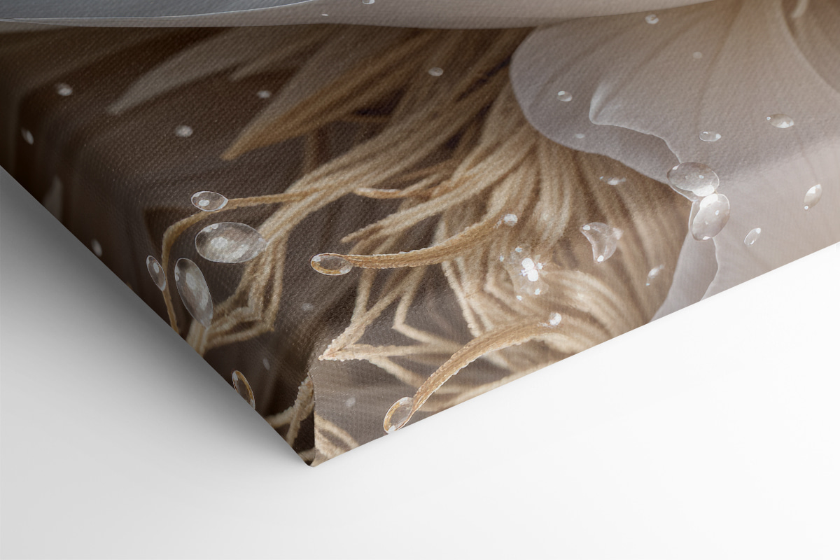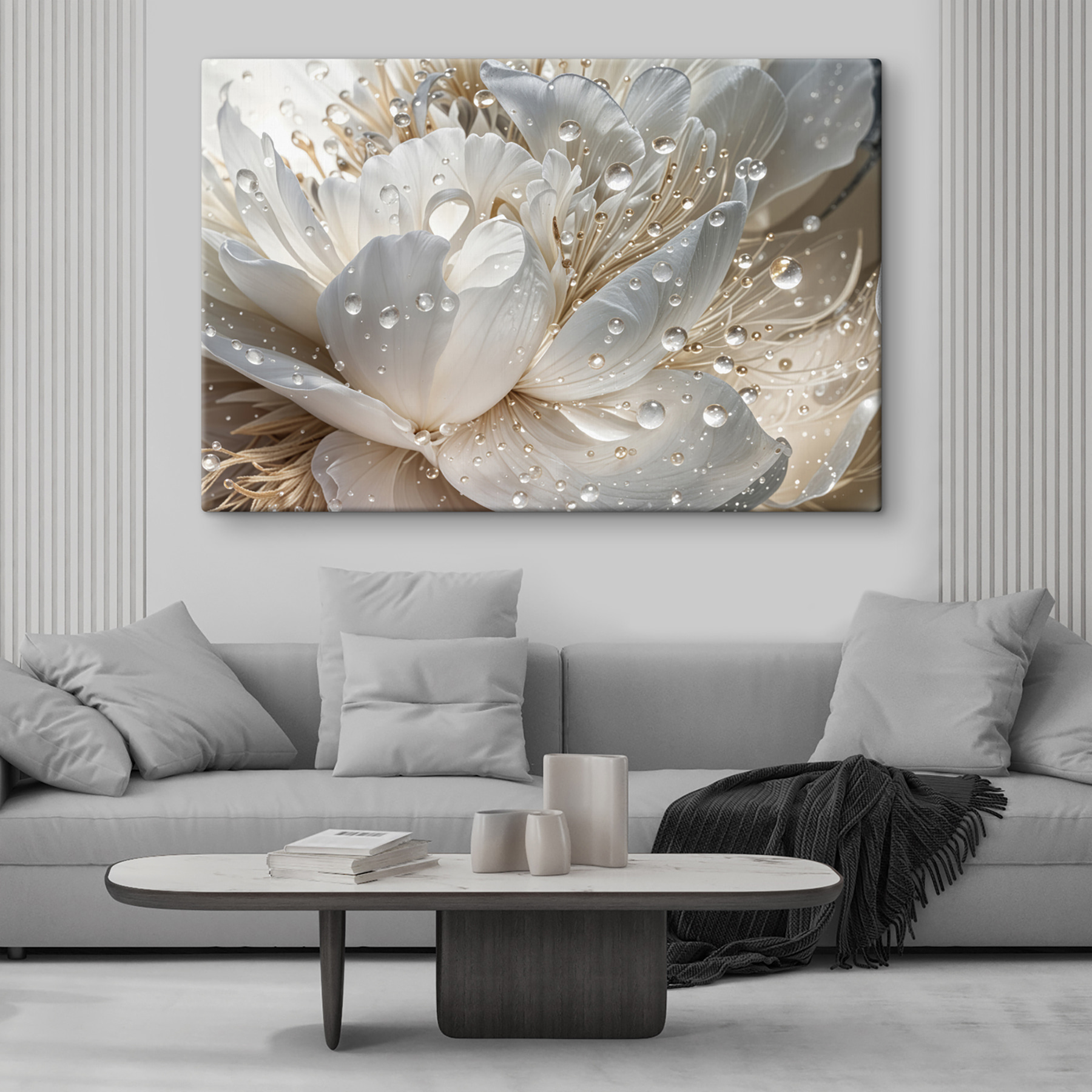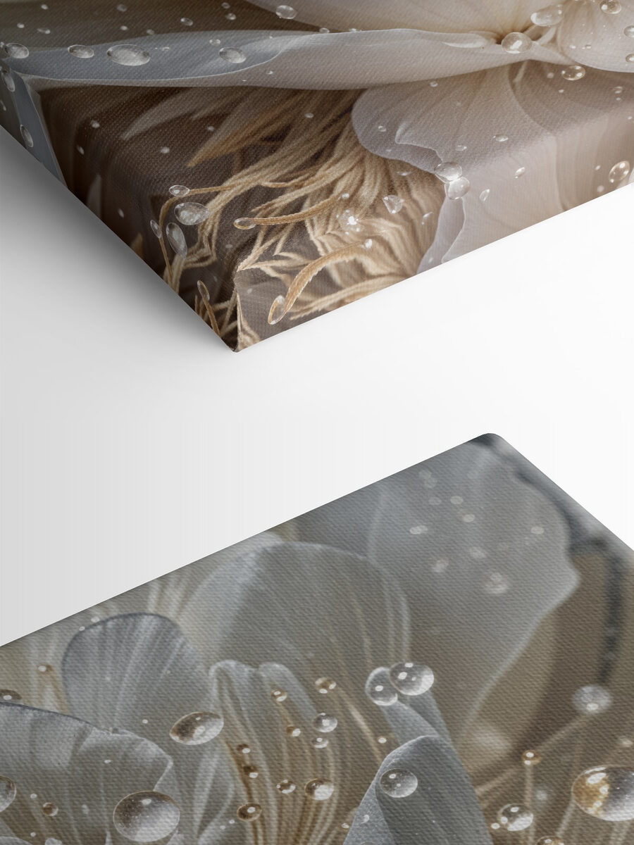 Apportez une touche de nature à votre intérieur avec cette impression sur toile, Gouttes de rosée sur pétales blancs immaculés. Imaginez que vous entrez dans une pièce et que vous êtes accueilli par la beauté délicate d’une fleur, qui brille doucement avec la rosée du matin. C’est comme un doux murmure de printemps tout au long de l’année. Parfaite pour égayer votre espace – qu’il s’agisse d’un coin douillet ou d’un point central du salon – cette œuvre d’art ajoute une touche de fraîcheur qui ne peut que vous mettre de bonne humeur. De plus, qui n’aime pas entamer une conversation ? Les invités seront attirés par son charme serein, suscitant des histoires sur le jardin d’été parfait. C’est un petit morceau de l’extérieur, directement sur votre mur !