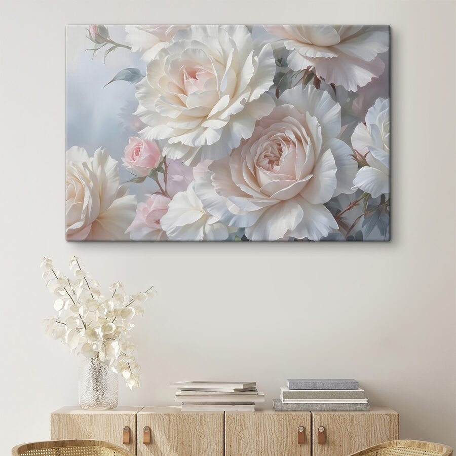 Découvrez cette beauté ! L’œuvre “Tableaux s40562” n’est pas une simple œuvre d’art murale, c’est une véritable ambiance. Imaginez que vous entrez dans votre salon et que vous avez l’impression d’avoir pénétré dans un jardin de rêve. Ces douces roses pastel murmurent presque des mots doux, créant une ambiance à la fois apaisante et délicieuse.
