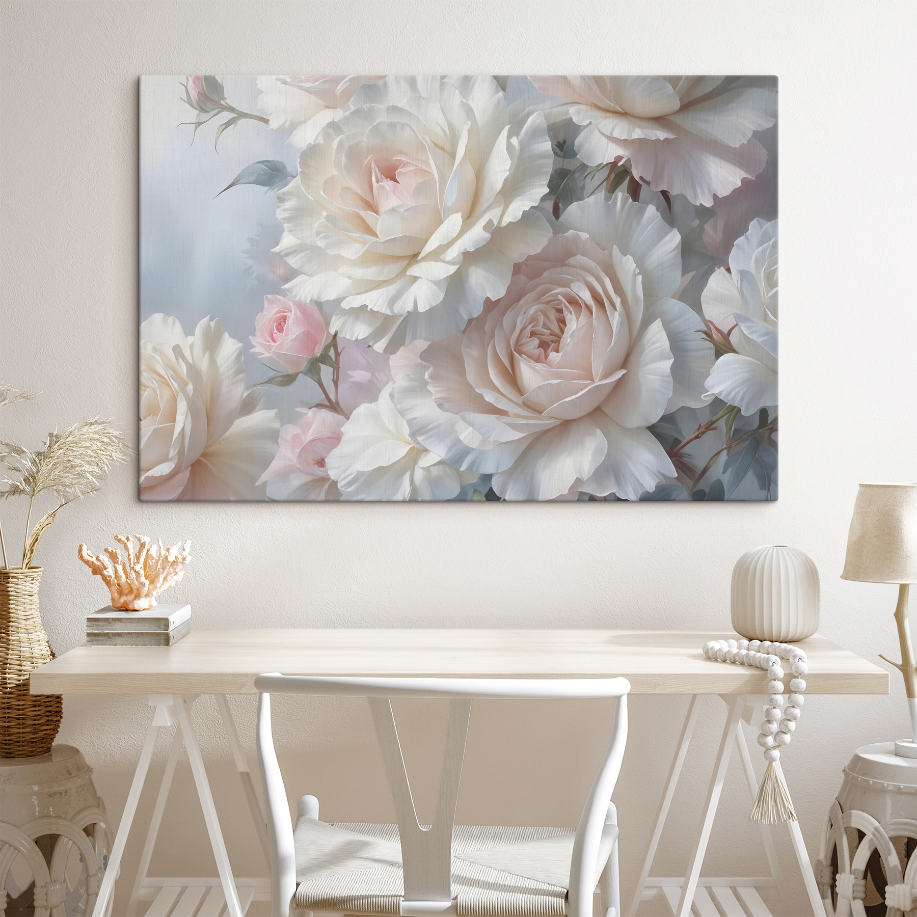 Découvrez cette beauté ! L’œuvre “Tableaux s40562” n’est pas une simple œuvre d’art murale, c’est une véritable ambiance. Imaginez que vous entrez dans votre salon et que vous avez l’impression d’avoir pénétré dans un jardin de rêve. Ces douces roses pastel murmurent presque des mots doux, créant une ambiance à la fois apaisante et délicieuse.