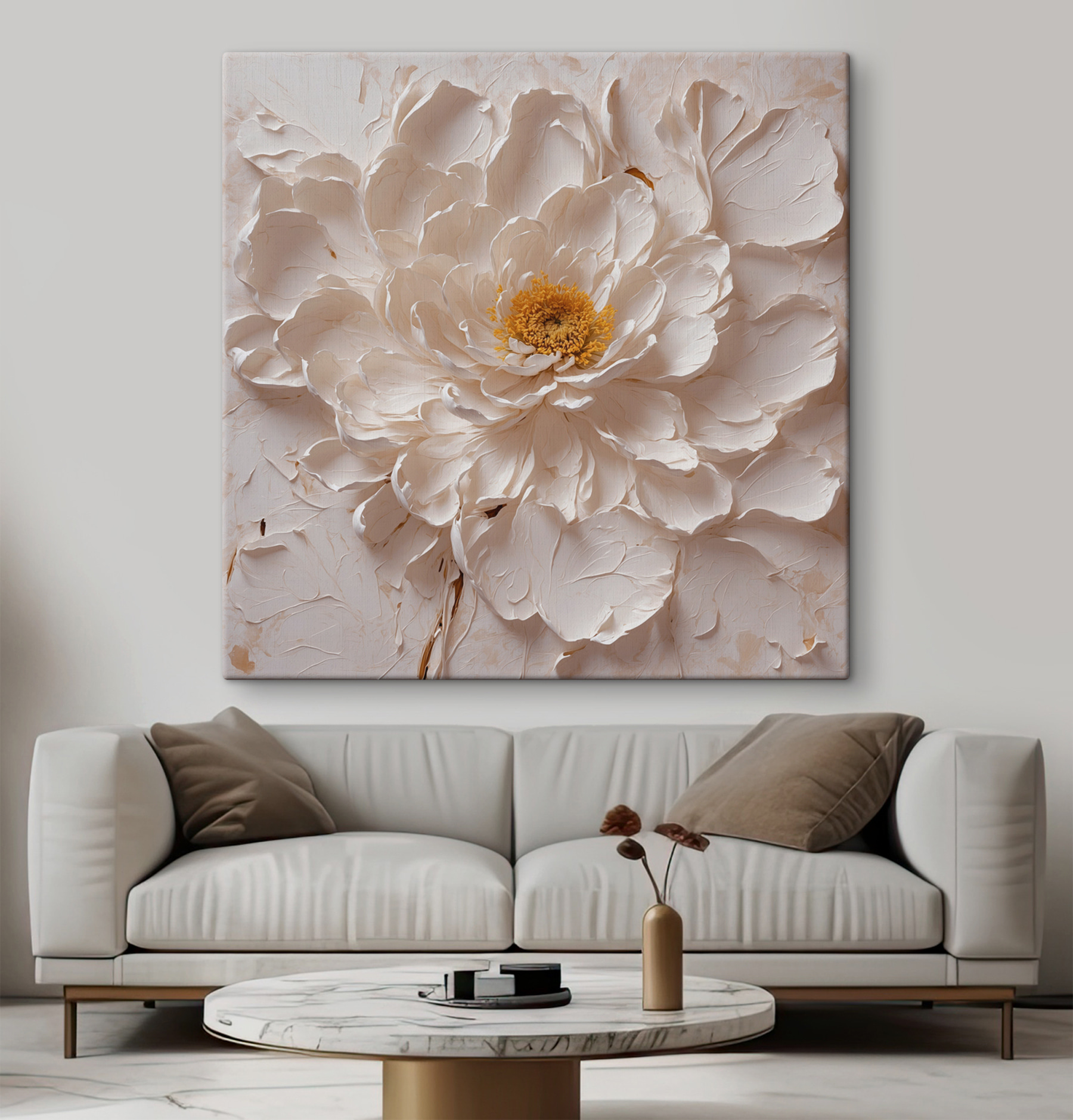 Transformer un mur n’a jamais semblé aussi facile. Ce “Tableaux White Flower with a Yellow Center” ajoute une touche de charme naturel à votre intérieur. Imaginez-la accrochée dans un salon confortable ou un bureau lumineux – soudain, tout le monde s’y promène pour l’apercevoir. Les doux pétales donnent presque envie de les toucher. C’est comme si l’on faisait entrer un petit jardin à l’intérieur, l’arrosoir en moins. Parfait pour tous ceux qui souhaitent ajouter une touche de couleur et de sérénité sans se prendre la tête. Préparez-vous à être l’heureux propriétaire d’une merveille florale qui pourrait bien voler la vedette.