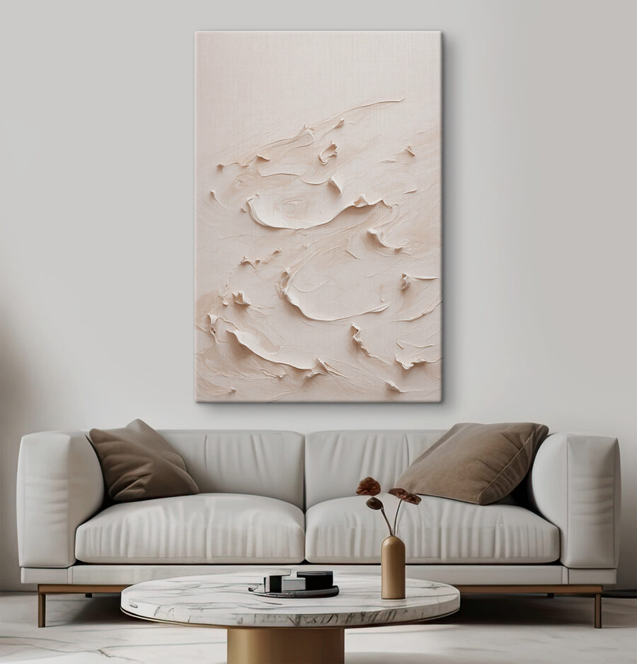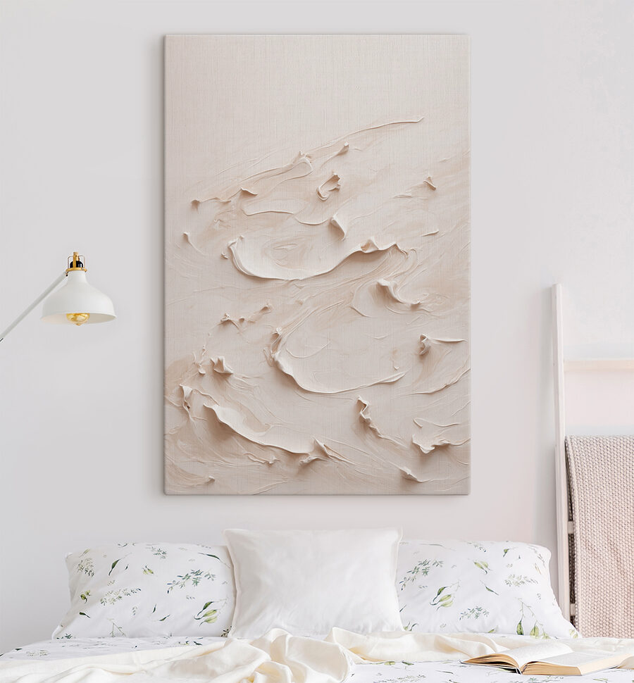 Baptisée “Creamy swirls in artistic flow” (tourbillons crémeux dans un flux artistique), cette impression sur toile ressemble à une douce brise balayant votre salon. Imaginez que vous vous asseyez avec une tasse de thé et que vous laissez vos pensées vagabonder à travers ces tourbillons laiteux hypnotiques. Il y a quelque chose de presque musical dans la façon dont chaque courbe se fond dans la suivante, comme une valse élégante capturée sous forme d’art. Parfait pour ceux qui aiment les beaux-arts avec une touche de fantaisie. C’est le genre de pièce qui incite les invités à s’arrêter et à dire “Wow, parlez-moi de ça !”.