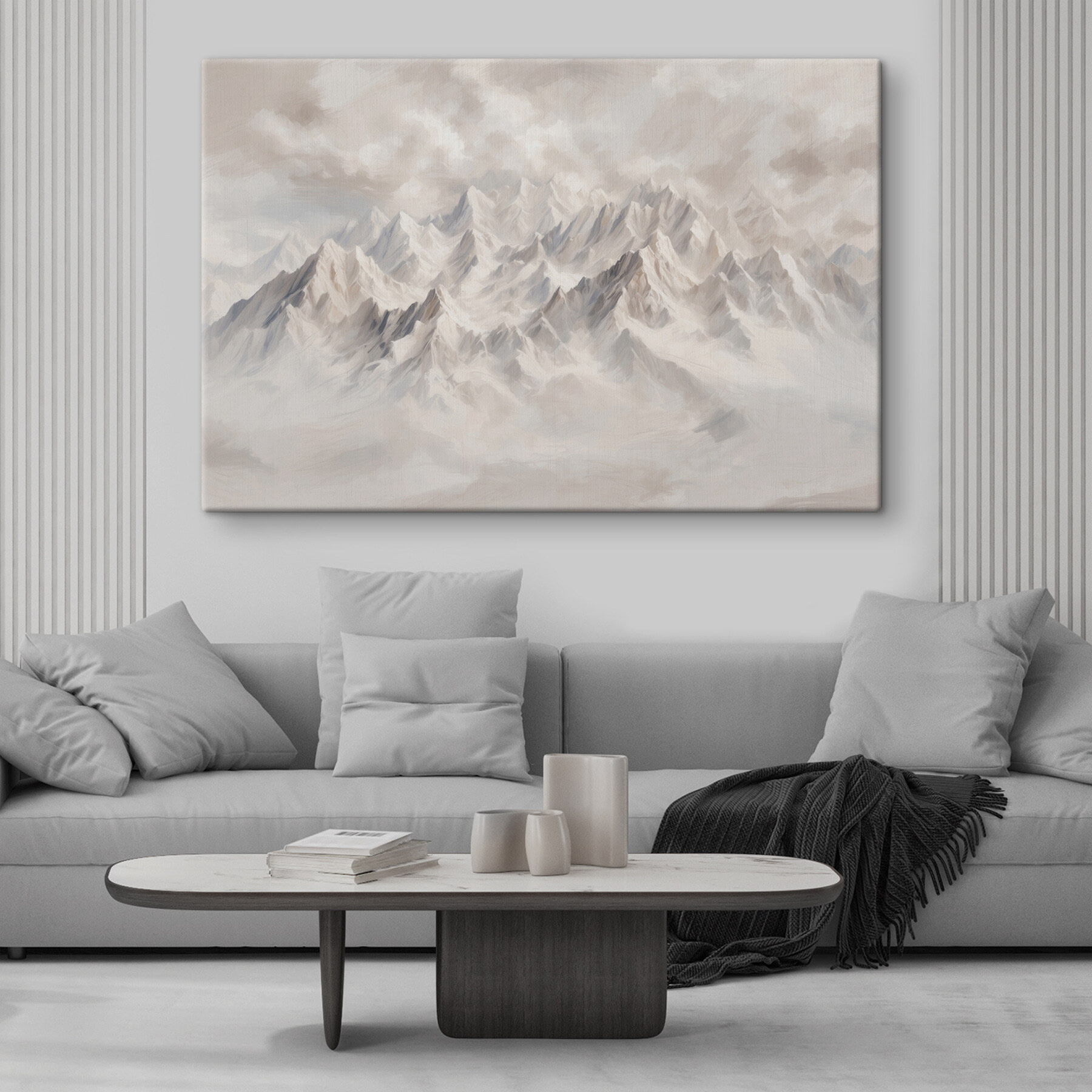Transformez n’importe quelle pièce avec cette superbe “Impression sur toile Chaîne de montagnes avec nuages”. C’est comme si vous apportiez un peu de l’extérieur dans votre maison, sans les chaussures de randonnée et le spray anti-moustiques. Imaginez-vous en train de vous installer par une soirée fraîche, une boisson chaude à la main, en regardant ces pics majestueux baignés par de doux nuages. La palette de couleurs douces ajoute une ambiance tranquille, idéale pour s’évader en toute sérénité après une longue journée. De plus, c’est un excellent moyen d’engager la conversation. Vos amis ne manqueront pas de vous poser des questions à son sujet ! Il s’intègre parfaitement dans n’importe quel espace et donne aux murs une impression de vie. Qui aurait cru que les nuages pouvaient être aussi élégants ?