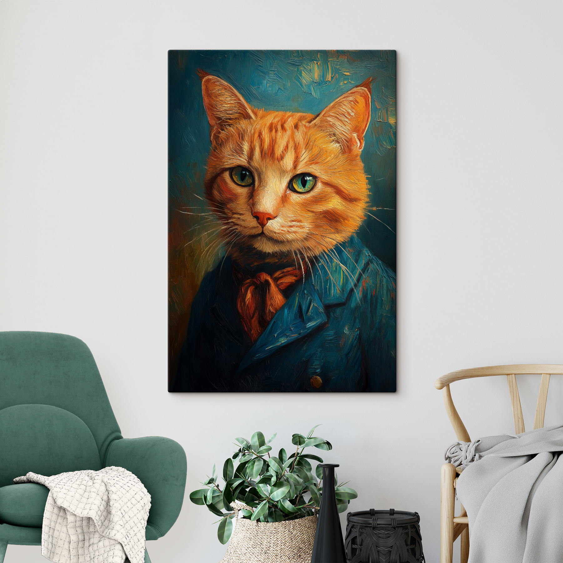 Pourquoi tant de gens aiment l’impression sur toile “Chat en costume” ? C’est peut-être à cause de ses yeux verts perçants ou de sa tenue élégante : ce félin semble prêt à diriger une réunion du conseil d’administration ou à prendre le thé. Imaginez-le dans votre salon. Ce n’est pas seulement un chat habillé, c’est une déclaration ! Les invités risquent de rire, hochant la tête comme s’ils avaient rencontré un chat d’affaires très sérieux (et très stylé). Cela ajoute une touche de fantaisie et de classe, n’est-ce pas ? C’est un peu comme si vous aviez un gardien des arts à poils. De quoi alimenter les conversations dans n’importe quelle pièce !