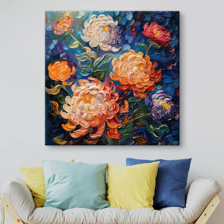 Jetez un coup d’œil à cette charmante impression sur toile, simplement appelée “Peinture de fleurs sur fond bleu”. C’est comme un conte de fées sur votre mur. Imaginez que vous entrez dans une pièce et que vous êtes instantanément emporté par une mer de couleurs tourbillonnantes – ces fleurs vibrantes dansent pratiquement sur leur fond bleu de rêve ! Parfait pour ajouter une touche de fantaisie à votre espace. C’est un art qui murmure “Hé, prenez un moment pour apprécier la beauté”. De quoi alimenter les conversations, vous ne trouvez pas ?