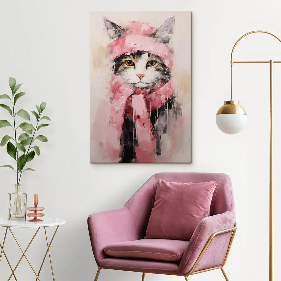 Vous êtes-vous déjà demandé à quoi ressemble la sophistication chez les félins ? Voici un chat qui a préparé sa tenue d’hiver, portant une écharpe avec l’assurance d’un mannequin ! Cette charmante toile est un sujet de conversation immédiat. Imaginez-la sur le mur de votre salon, ajoutant une touche de fantaisie et de chaleur. Ce n’est pas seulement de l’art, c’est aussi un délicieux aperçu de l’aventure hivernale imaginaire d’un chat. Parfait pour ceux qui adorent les décors excentriques et une bonne dose d’humour. Qui n’aime pas les chats bien habillés ?