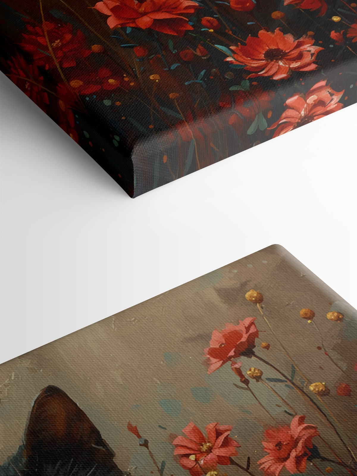 Cette œuvre d’art a de l’allure : un mystérieux chat noir niché dans une mer de fleurs d’un rouge éclatant. C’est comme un petit morceau d’enchantement capturé sur la toile. Imaginez-la accrochée à votre mur ; elle pourrait bien devenir la gardienne secrète de votre espace. Ces yeux ! Ils semblent vous suivre, comme si le chat gardait vos secrets ou se demandait simplement ce qu’il y a à manger.