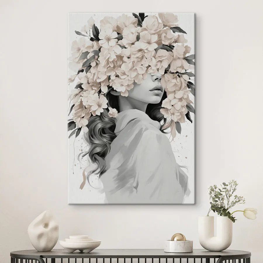 Imaginez que vous entriez dans une pièce et que vous soyez accueilli par cette superbe toile d’art. Une femme parée d’un bouquet de fleurs, sa beauté se fondant doucement dans les fleurs délicates. Elle vous attire et vous fait penser aux journées de printemps et aux brises légères. Parfaite pour un coin douillet ou pour un mur vide qui ne demande qu’à être rehaussé d’une touche de charme, cette pièce a une façon de chuchoter l’élégance tout en gardant la fraîcheur sans effort. Les amis s’arrêteront et admireront, peut-être même rêvasseront-ils un peu. C’est comme avoir une conversation avec l’art – une charmante conversation florale qui illumine l’ambiance et rend tout espace un peu plus vivant. Un véritable coup de cœur !