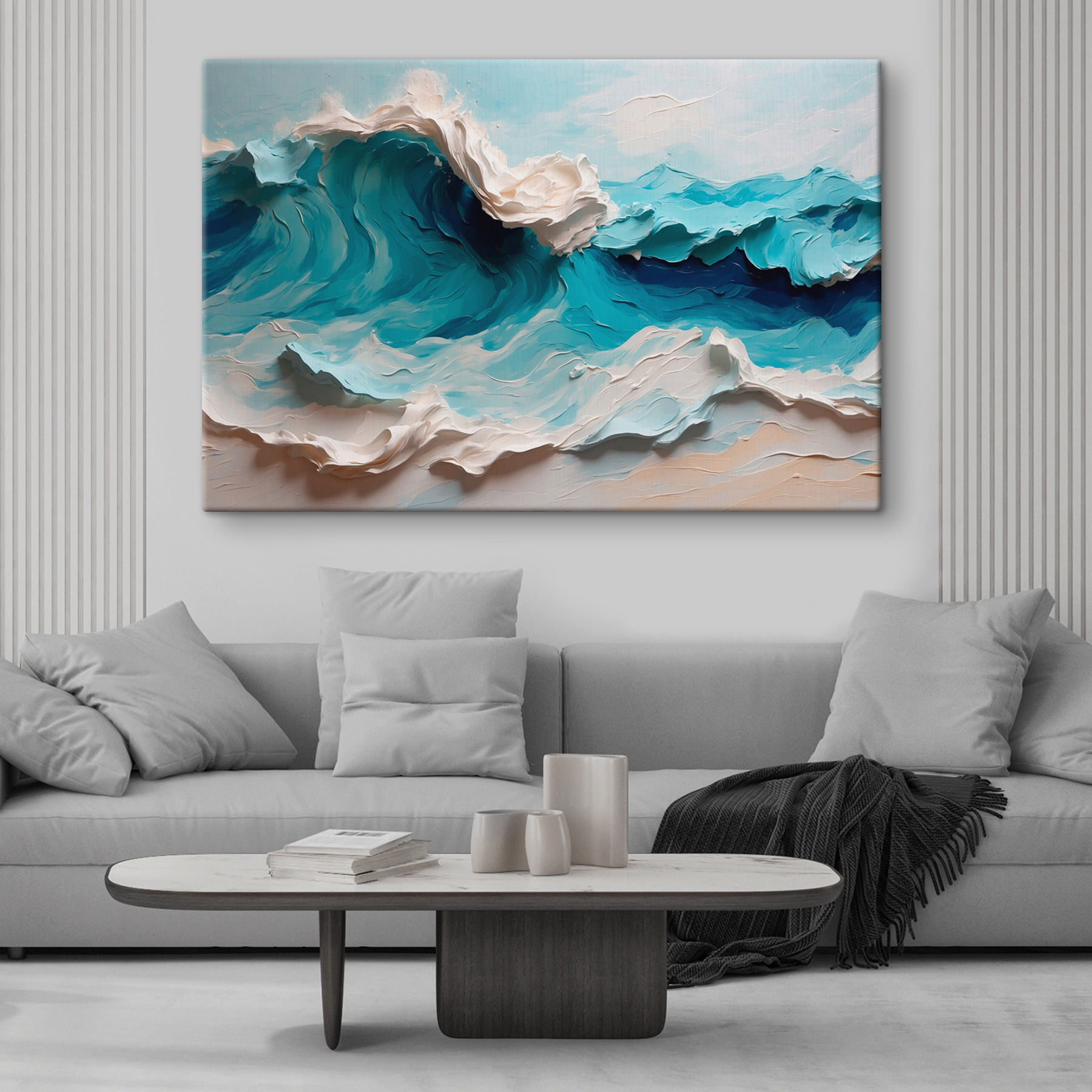 Plongez dans le chaos serein de la “Peinture sur toile d’une vague” ! Vous connaissez ce sentiment lorsque la brise de l’océan murmure la liberté ? C’est ce que cette œuvre vous apporte. Les bleus vibrants et les blancs tourbillonnants capturent l’âme de la mer – sauvage mais apaisante. C’est comme si l’océan était là, sans les pieds mouillés. Parfait pour apporter une touche de drame naturel à votre espace. Imaginez que vous sirotiez un café en regardant cette vague onduler sur votre mur. Ce n’est pas seulement de l’art, c’est une évasion. Ça donne un peu envie de surfer, non ?