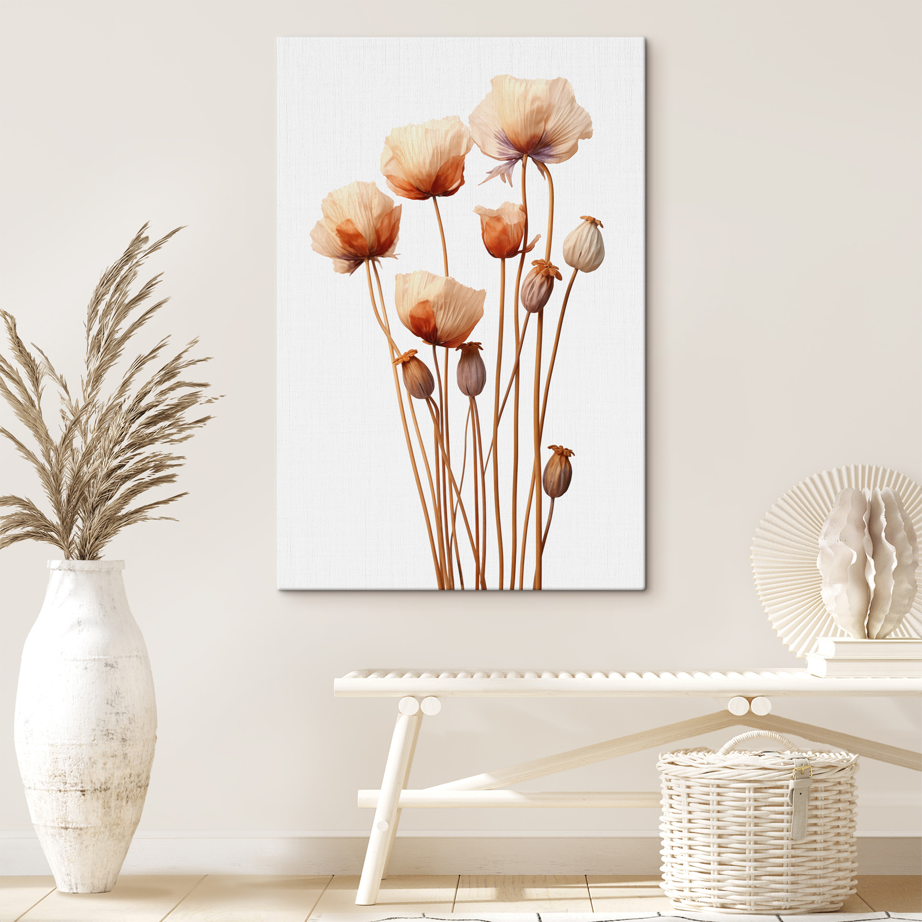 Imaginez que vous entrez dans une pièce et que vous ressentez instantanément une douce brise d’été. Cette impression sur toile “Groupe de fleurs avec bourgeons” apporte une touche de poésie naturelle sur vos murs. Le charme de l’aquarelle, à la fois délicate et vibrante, donne l’impression que les fleurs pourraient se pencher vers vous et vous chuchoter les secrets d’une prairie baignée de soleil. C’est l’idéal pour les après-midi tranquilles autour d’un thé (ou de quelque chose de plus fort). Une pièce délicieuse qui suscite la joie avec sa danse gracieuse de pétales, comme un petit câlin de la nature pour votre espace.