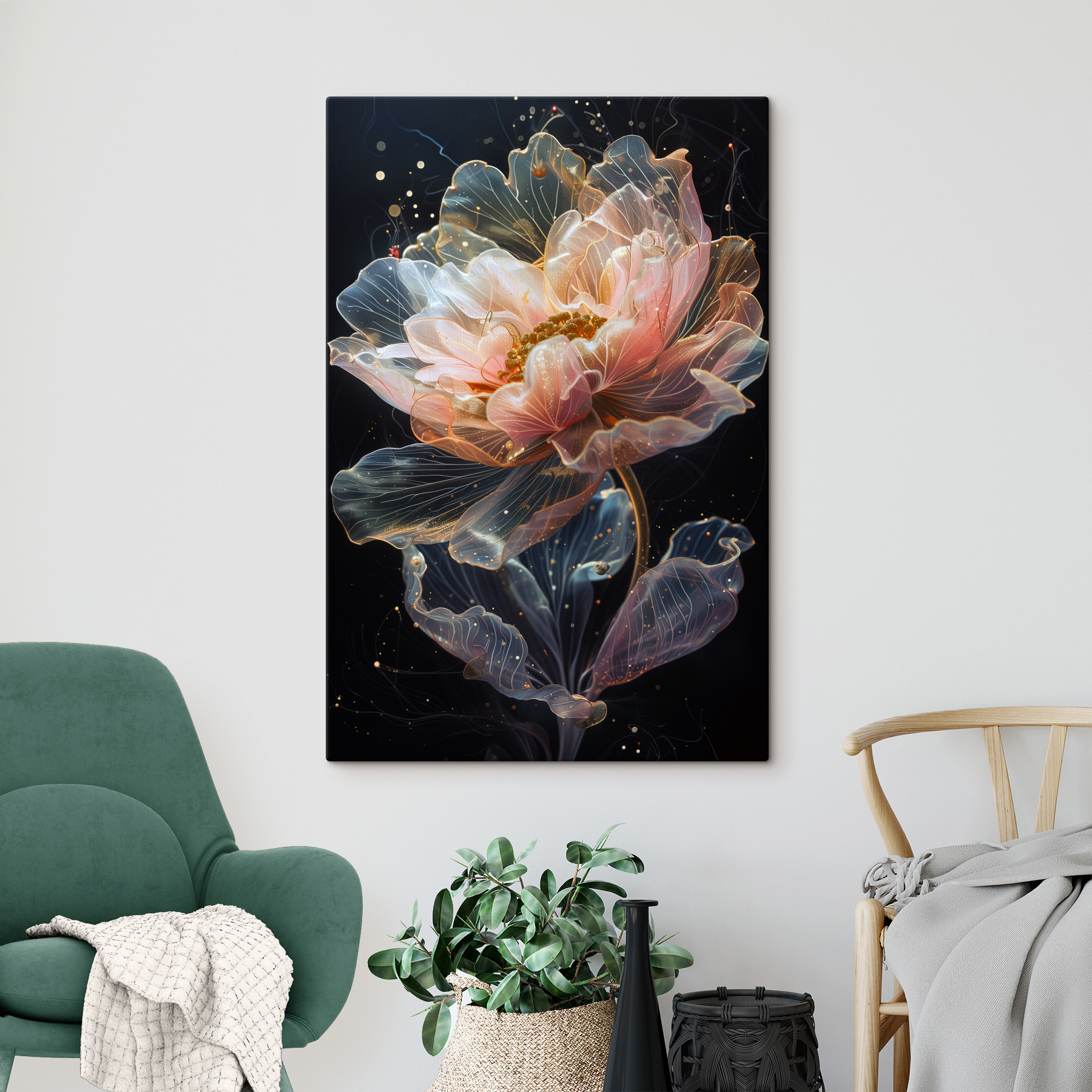 Plongez dans un monde de rêve avec “Illuminated Bloom in Midnight Waters”. Cette toile d’art est comme une aventure de jardin nocturne pour vos murs – une magnifique fleur flottant dans des profondeurs d’encre. Parfait pour tous ceux qui souhaitent ajouter une touche de mystère et d’élégance à leur chambre. Imaginez-vous en train de siroter un thé, blotti sous une couverture douillette, avec cette douce fleur qui brille doucement à proximité. C’est à la fois une œuvre abstraite et une œuvre d’art, avec une touche d’aquarelle qui fera se pâmer les amateurs d’art. C’est un peu comme avoir un peu de magie là où l’on s’y attend le moins.