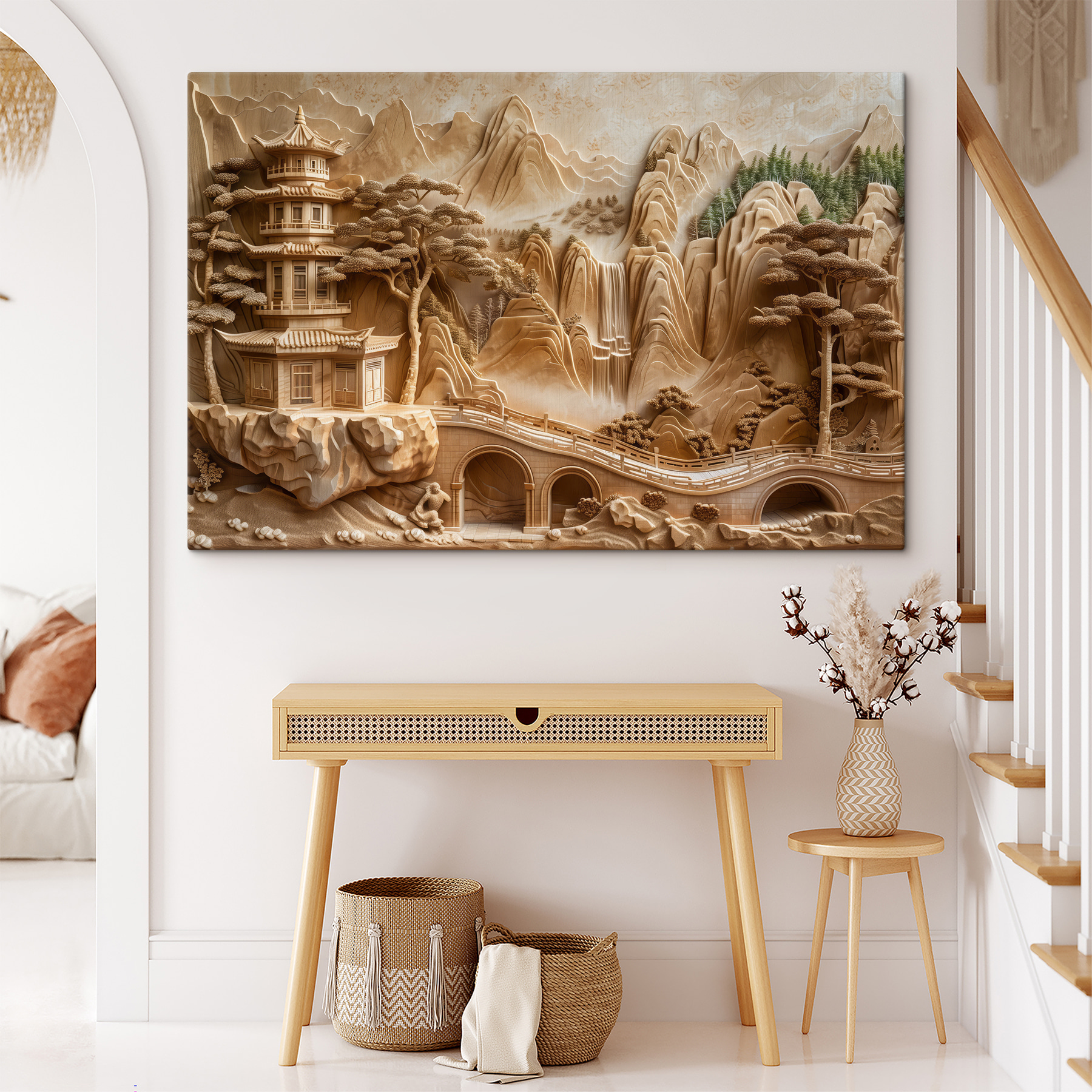 Entrez dans un monde serein avec cette captivante impression sur toile représentant un superbe pont et un bâtiment traditionnel nichés dans des paysages luxuriants et paisibles. Imaginez le doux bruit de l’eau qui coule tout près de vous tandis que vous contemplez les détails complexes qui donnent vie à cette œuvre. C’est comme si vous apportiez une touche de la beauté naturelle du Japon dans votre maison. Parfait pour susciter des rêveries ou inspirer des conversations chaleureuses, cet objet d’art invite au calme et à l’émerveillement. En le plaçant dans un salon ou un espace de travail, vous transformez l’ambiance et rendez chaque journée un peu plus lumineuse. Que ce soit pour votre propre espace ou pour un cadeau attentionné, cette toile ajoute une touche parfaite de nature et de culture. Qui ne voudrait pas s’évader dans cette scène enchanteresse ?