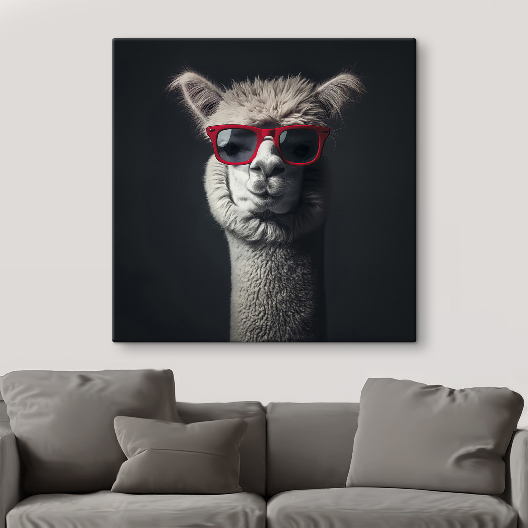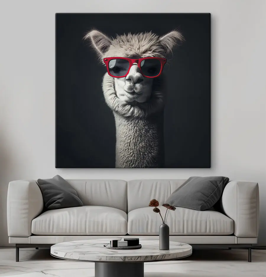 Voici votre nouveau sujet de conversation préféré : un lama cool portant des lunettes de soleil rouges. C’est le mélange parfait du charme du noir et blanc avec une touche d’humour. Imaginez ce lama effronté dans votre salon, ajoutant une touche de fantaisie et de mystère. L’ambiance minimaliste reste classe, tandis que les lunettes de soleil ? Du charisme à l’état pur. C’est comme si vous aviez un ami stylé qui est trop cool pour l’école mais qui aime secrètement vous faire sourire. Parfait pour les amoureux des animaux et tous ceux qui apprécient un peu d’humour dans leur décoration. Qui aurait cru que les lamas avaient autant de goût ?