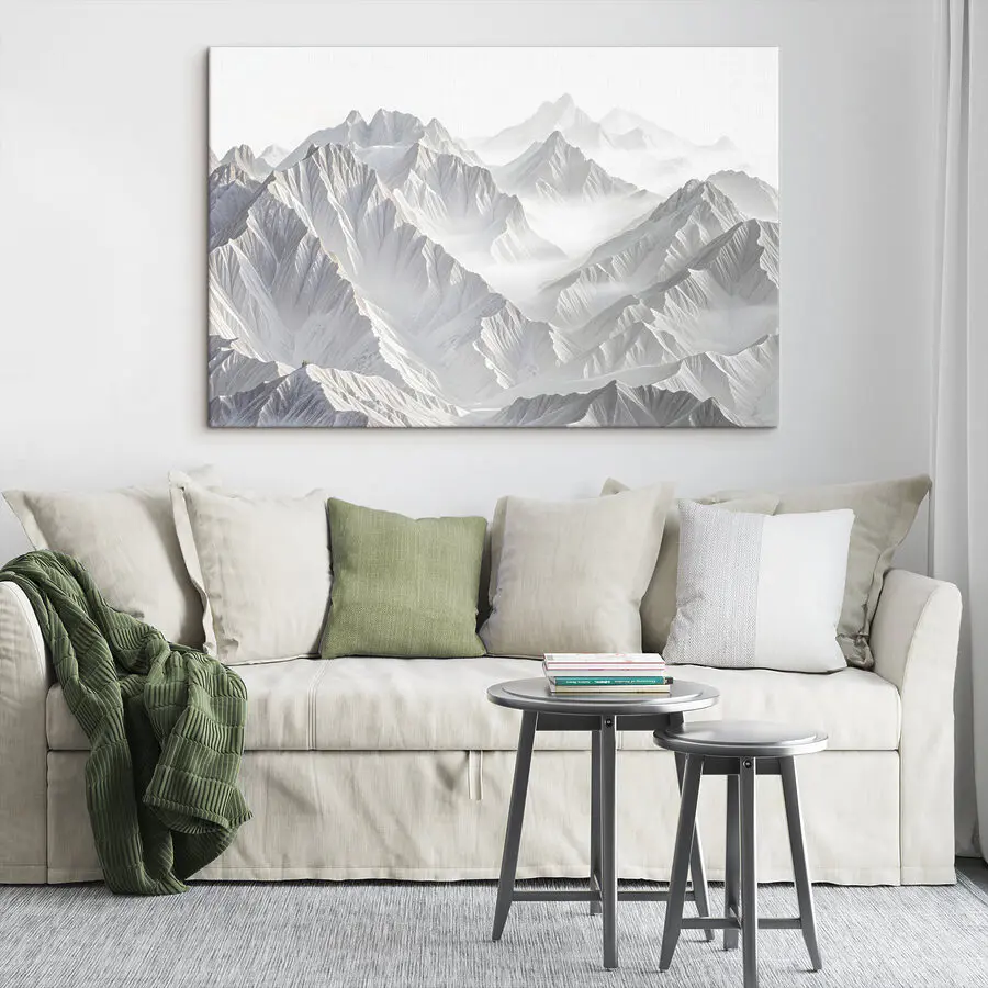 Imaginez que vous vous teniez à votre fenêtre avec cette superbe toile et que vous entendiez presque le murmure du vent sur ces majestueux pics enneigés. L’impression “Chaîne de montagnes enneigées avec nuages” capture toute la beauté sereine d’une nature sauvage gelée, sans les engelures. Parfait pour tous ceux qui rêvent d’aventures épiques mais apprécient un canapé douillet. Mélange envoûtant d’art minimaliste et d’art inspiré par la nature, il apportera une bouffée d’air frais de la montagne à votre espace. Il est également un excellent sujet de conversation, idéal pour les après-midi de rêverie ou les moments douillets au crépuscule !