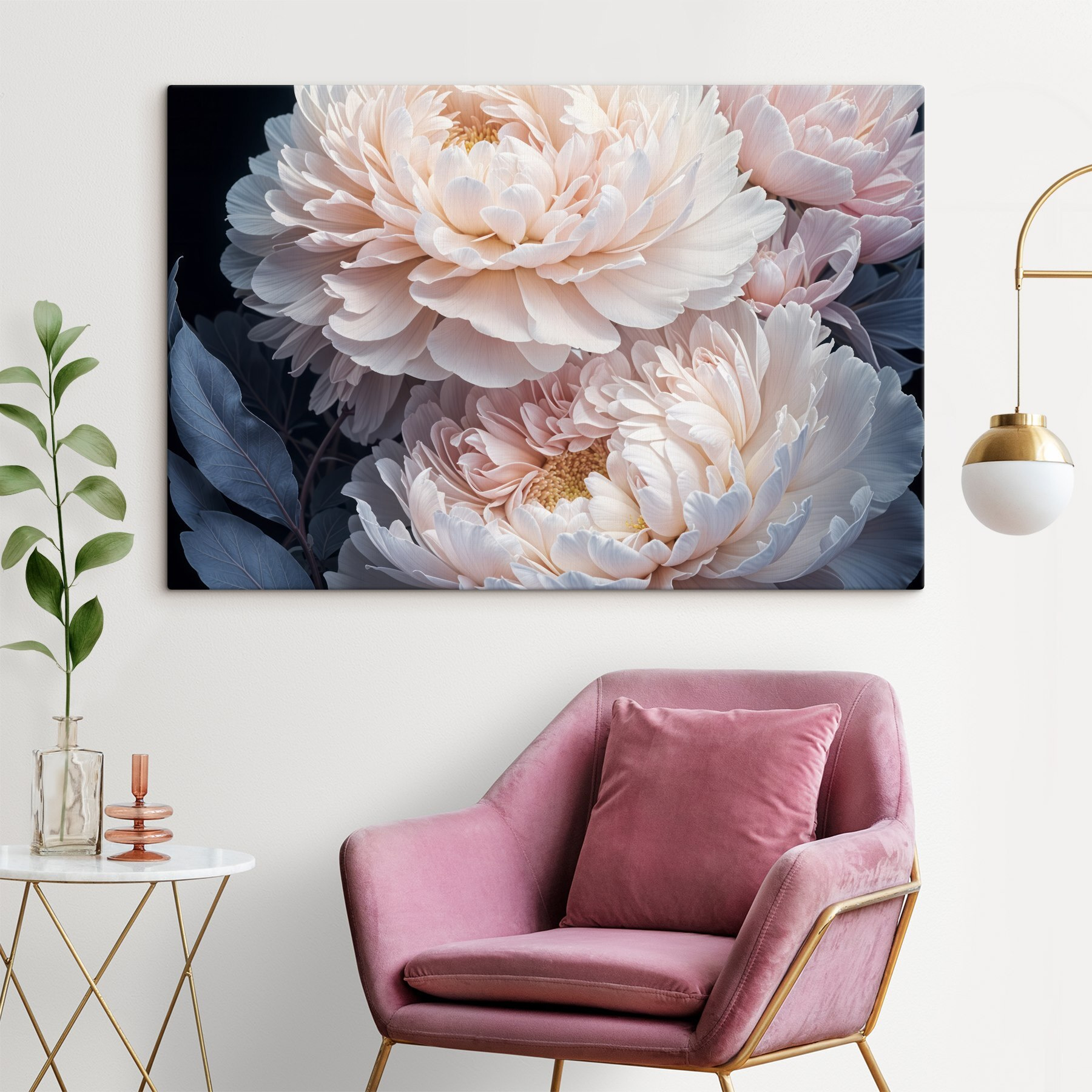 Avez-vous déjà rêvé de vous promener dans un jardin où les pétales murmurent des secrets de tranquillité ? Le tableau “Pale Petals in Soft Embrace” (Pétales pâles dans une douce étreinte) capture parfaitement ce moment de bonheur. Imaginez cette toile vous accueillant chaque jour, égayant votre espace de douces nuances de crème et de fard à joues – c’est comme une chaleureuse étreinte florale. Elle est parfaite pour les amoureux des fleurs ou pour tous ceux qui souhaitent une touche de nature à l’intérieur. De plus, il trouve sa place pratiquement partout : dans le salon, la chambre ou le petit coin lecture. Une évasion délicieuse du quotidien, directement sur votre mur.