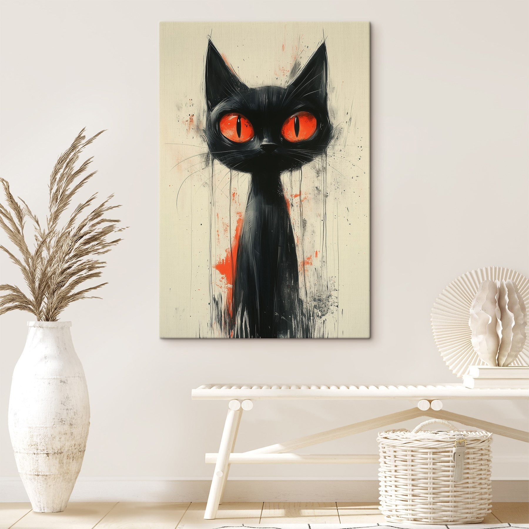 Ajoutez une touche de mystère à votre espace avec cette impressionnante impression sur toile d’un chat noir aux yeux rouges ardents. C’est comme si un petit gardien des secrets veillait sur votre chambre, prêt à éveiller la curiosité. Imaginez que vous rentrez chez vous après une longue journée, que vous jetez votre veste et que vous êtes accueilli par ces yeux captivants. Ce n’est pas seulement une œuvre d’art, c’est aussi un sujet de conversation ! Parfait pour les amateurs d’insolite, ou pour tous ceux qui ont besoin d’une touche unique dans leur décoration en noir et blanc. Une touche de fantaisie pour égayer (ou effrayer) votre journée !