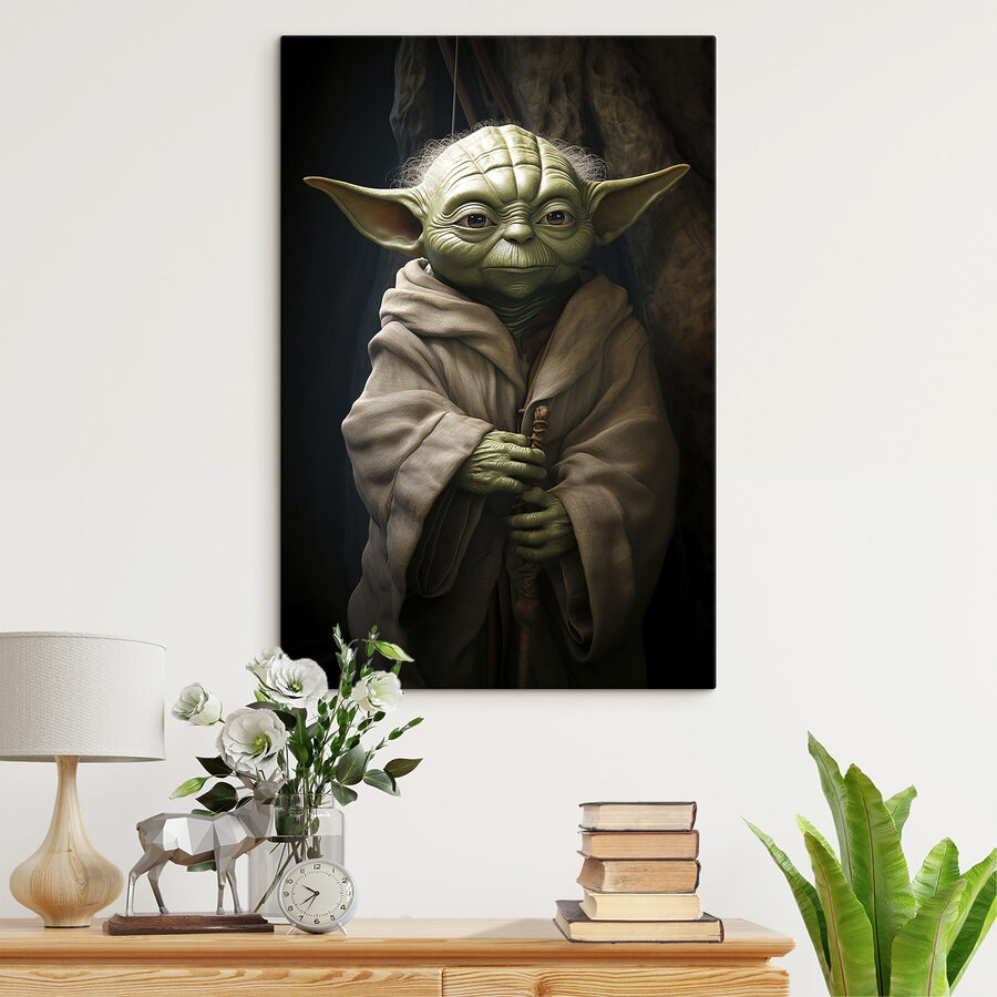 Apportez une touche de galaxie dans votre espace avec cette captivante impression sur toile. Avec un sage personnage vert drapé dans une robe, c’est comme si vous aviez un morceau de sagesse légendaire sur votre mur. Imaginez que vous rentrez chez vous après une longue journée et que vous vous sentez transporté dans une forêt sereine, les insectes en moins. Cette œuvre mêle sans peine mystère et tranquillité, suscitant curiosité et conversation. Elle est parfaite pour tous ceux qui aiment un peu d’aventure dans leur décoration d’intérieur. Ajoutez cette œuvre d’art à votre collection et regardez votre espace se transformer !