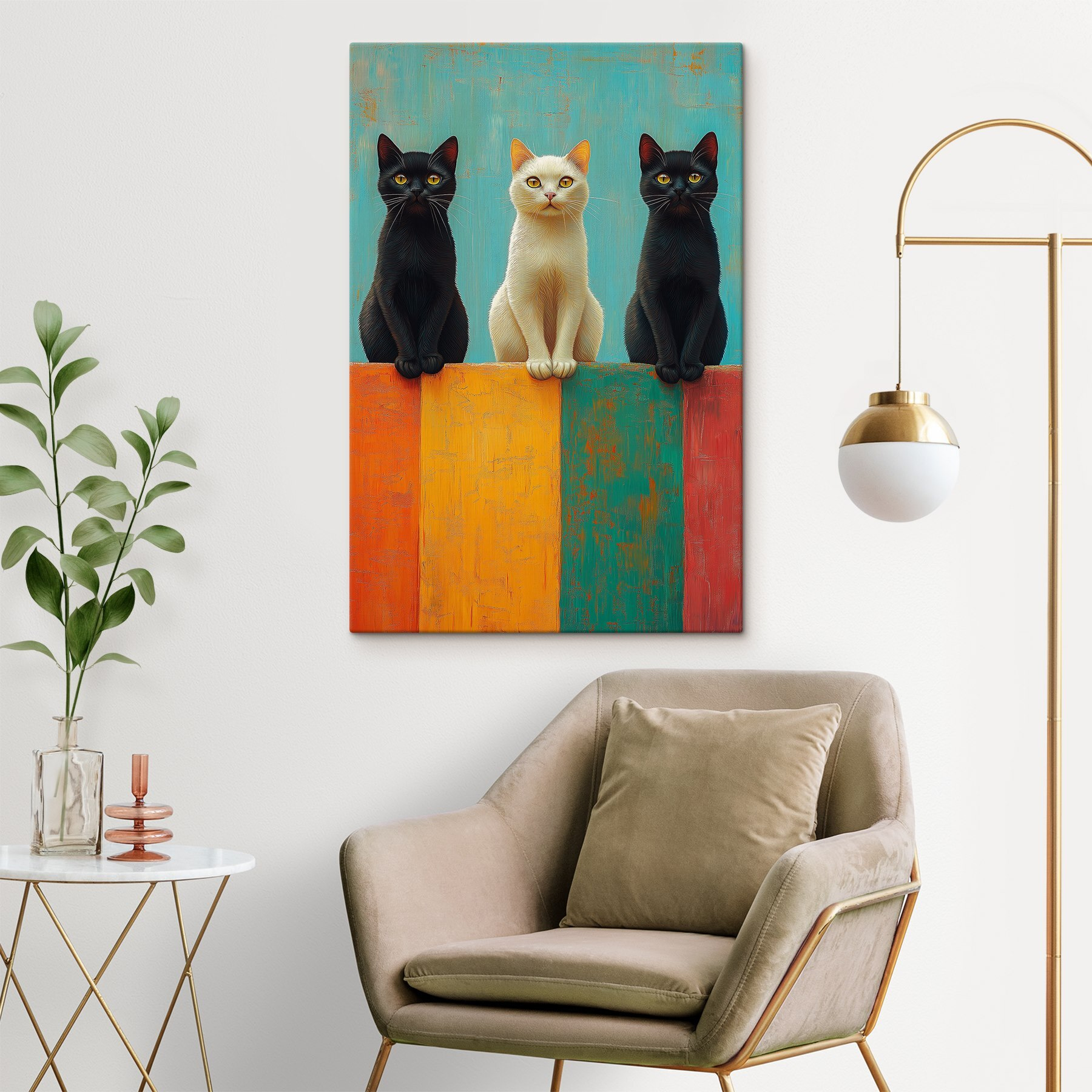 Imaginez : un trio de chats posant sur un mur coloré, prêt à ajouter une touche de fantaisie à votre chambre. Cette impression sur toile ne se limite pas aux chats – bien qu’ils soient indéniablement charmants – mais aussi à l’éclaboussure de couleurs vives, comme une invitation à égayer même la journée la plus terne. Elle est parfaite pour tous ceux qui ont déjà passé un après-midi à regarder des chats (ou qui auraient aimé pouvoir le faire). C’est comme s’ils étaient prêts à partager un secret – peut-être sur la domination du monde ? Accrochez-le et laissez leurs miaulements silencieux illuminer votre espace.