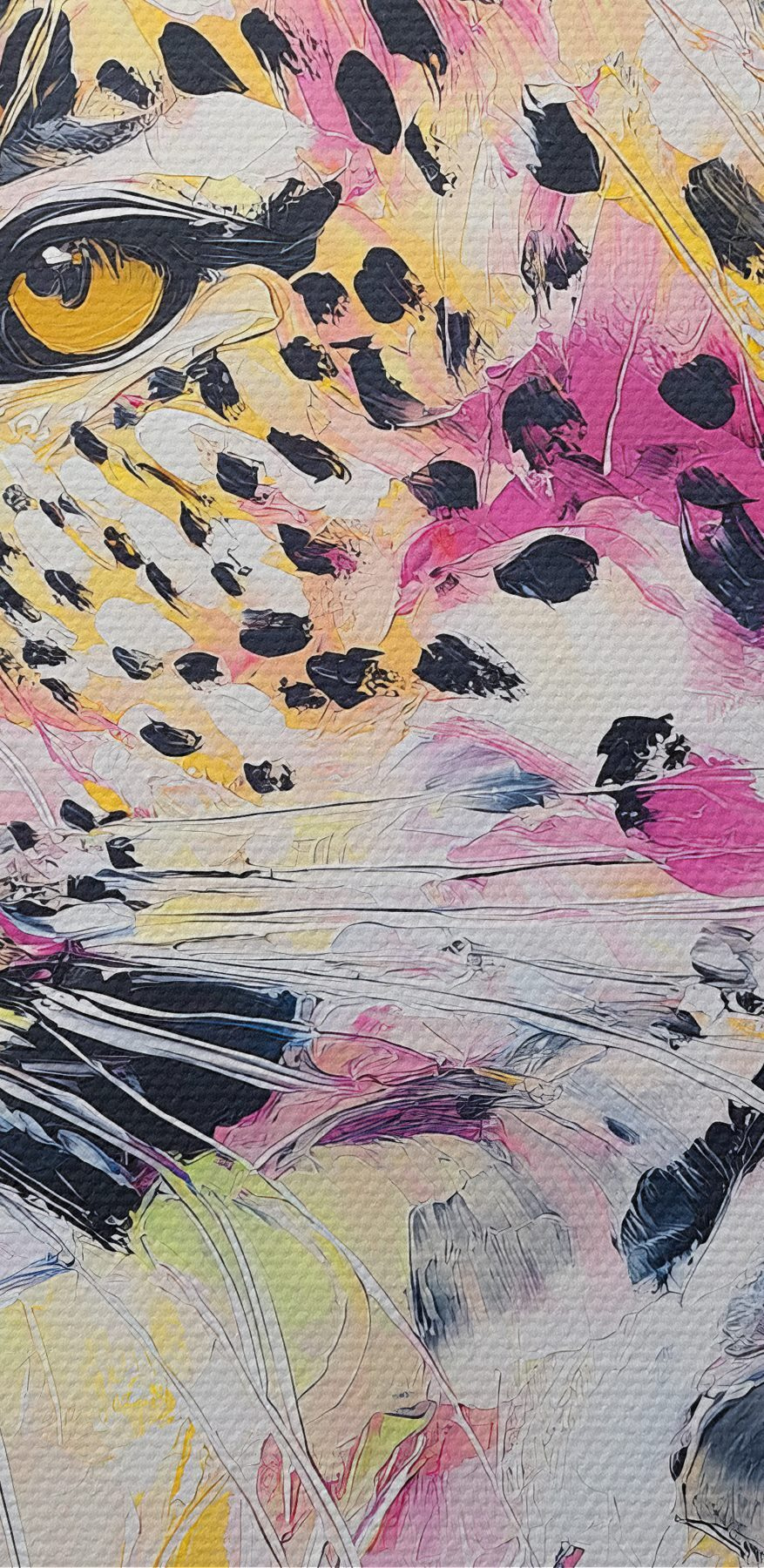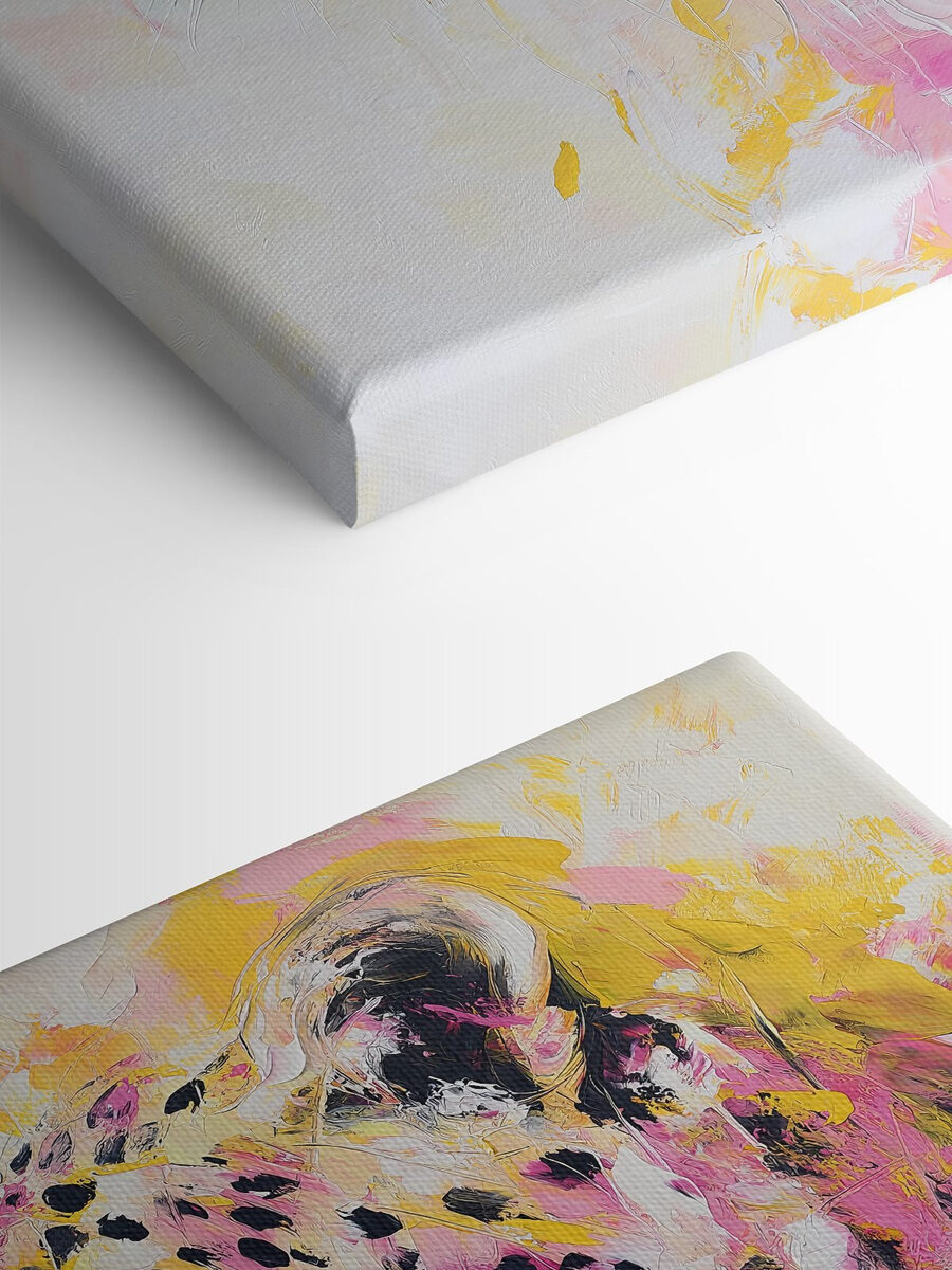 Cette impression sur toile vibrante d’un guépard est comme une touche de couleur sauvage dans votre chambre. Il attire tous les regards, n’est-ce pas ? Le mélange de jaunes et de roses audacieux – comme si le guépard passait une journée au spa – apporte une touche abstraite à son élégance féroce. Imaginez que vous entrez dans votre salon ; vous avez l’impression que ce gros chat est votre colocataire, et qu’il vous motive silencieusement à être audacieux et libre d’esprit. Parfait pour tous ceux qui aiment l’art qui fait impression mais qui ne se prend pas trop au sérieux !