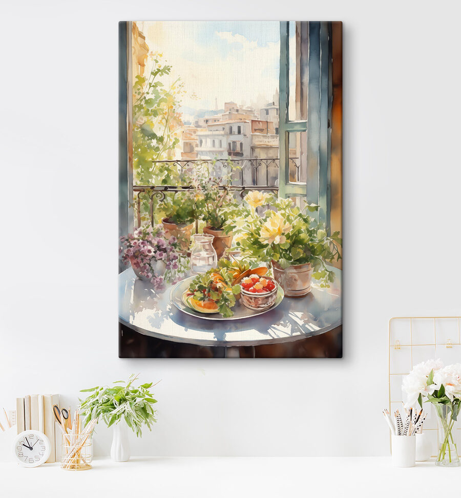 Imaginez : un dimanche matin paresseux avec votre café et cette toile vibrante sur votre mur. C’est comme si vous entriez dans un charmant petit café, avec la lumière du soleil se déversant à travers la fenêtre sur une table débordant de fleurs et de fruits aquarellés. Parfaite pour donner de la vie et de la couleur à n’importe quelle pièce, cette toile vous permet de vous évader à chaque fois que vous y jetez un coup d’œil. Les détails donnent l’impression de pouvoir être touchés, comme si vous pouviez cueillir un fruit juteux directement dans l’assiette. Un objet qui ne manquera pas d’alimenter les conversations et de susciter des rêves d’après-midi douillets et d’aventures artistiques.