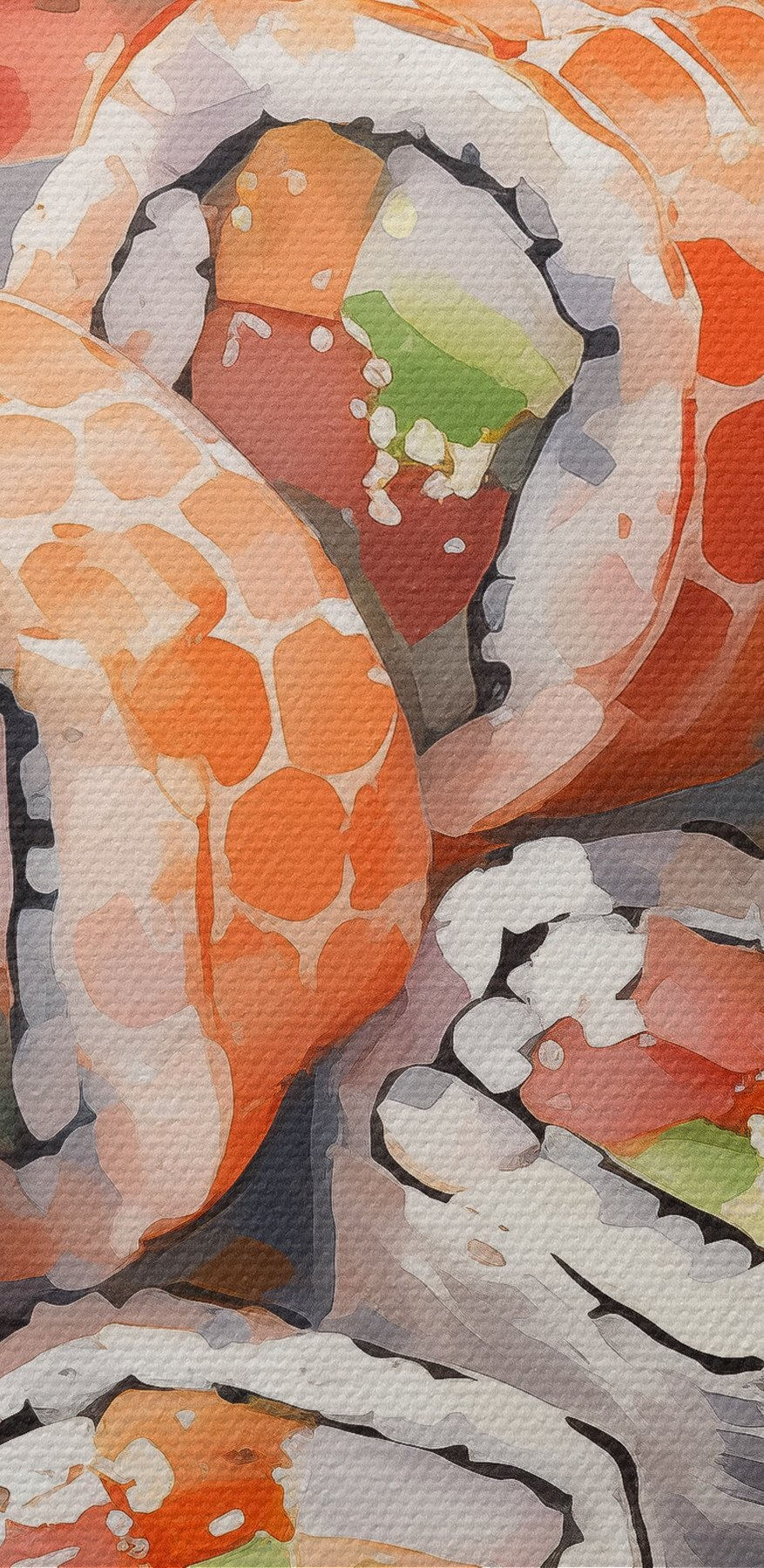 Imaginez un peu : vous entrez dans votre cuisine, et voilà une toile qui vous dit presque : “Quelqu’un veut des sushis ?” L’impression sur toile “Assiette de sushis et sauce” ressemble à un petit jardin zen sur votre mur. Ces délicats rouleaux semblent presque trop beaux pour être mangés, mais ne donnent-ils pas envie d’une soirée sushi ? La subtilité de la nature mélangée à la bouchée préférée de tous, c’est comme un dîner sophistiqué, le nettoyage en moins. Parfaite pour ajouter une touche de saveur à n’importe quel espace, cette œuvre d’art ne manquera pas de susciter de délicieuses conversations.